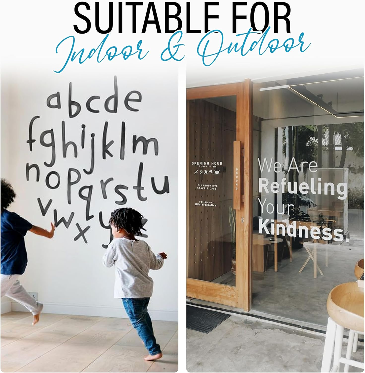 - DURABLE, WEATHER-RESISTANT DECALS: Our fade-resistant, weatherproof wall vinyl decals are perfect for both home offices and businesses, whether used indoors or outdoors. They remain vibrant over time, thus making them ideal to be used as a business logo that retains their original look even after repeated cleanings.