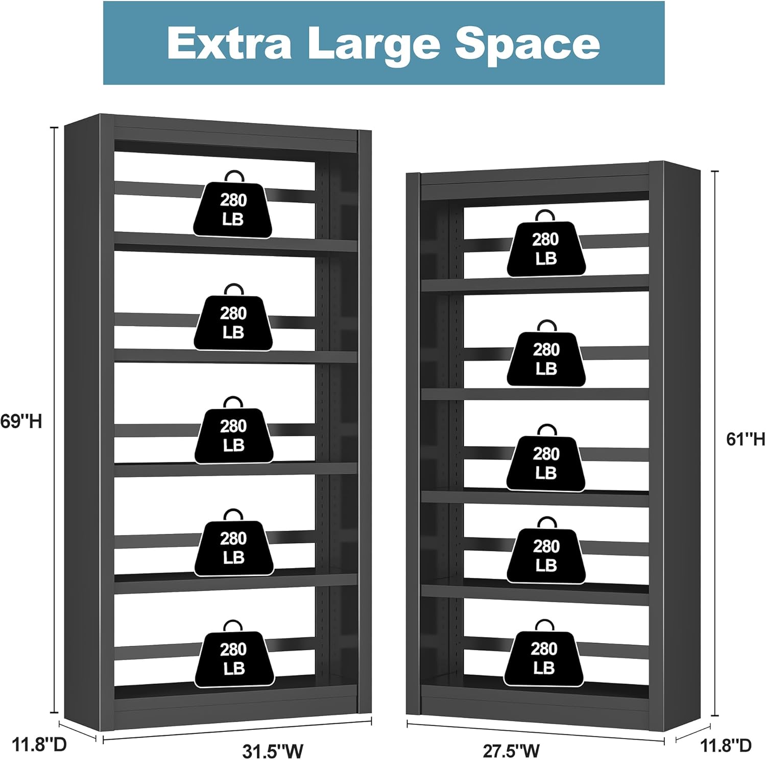 - 【Spacious & Heavy-Duty Design】This 5-tier metal sturdy bookshelf supports up to 280lbs per shelf, making it perfect for storing books, files, decor, or even heavy equipment. Ideal for both home and office use, it’s a top choice for heavy duty storage and office storage solutions.