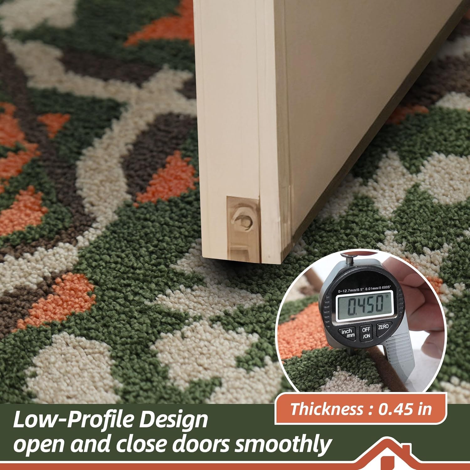 - Stylish and Low Profile Design: Boho geometric floral patterns are suitable for most kinds of home décor. Our doormats measure 24" x 36" x 0.45", low-profile design and reinforced overlock edges to ensure that doors won't get stuck or the door rug go curling. Note: Please confirm the height of the door gap before purchasing