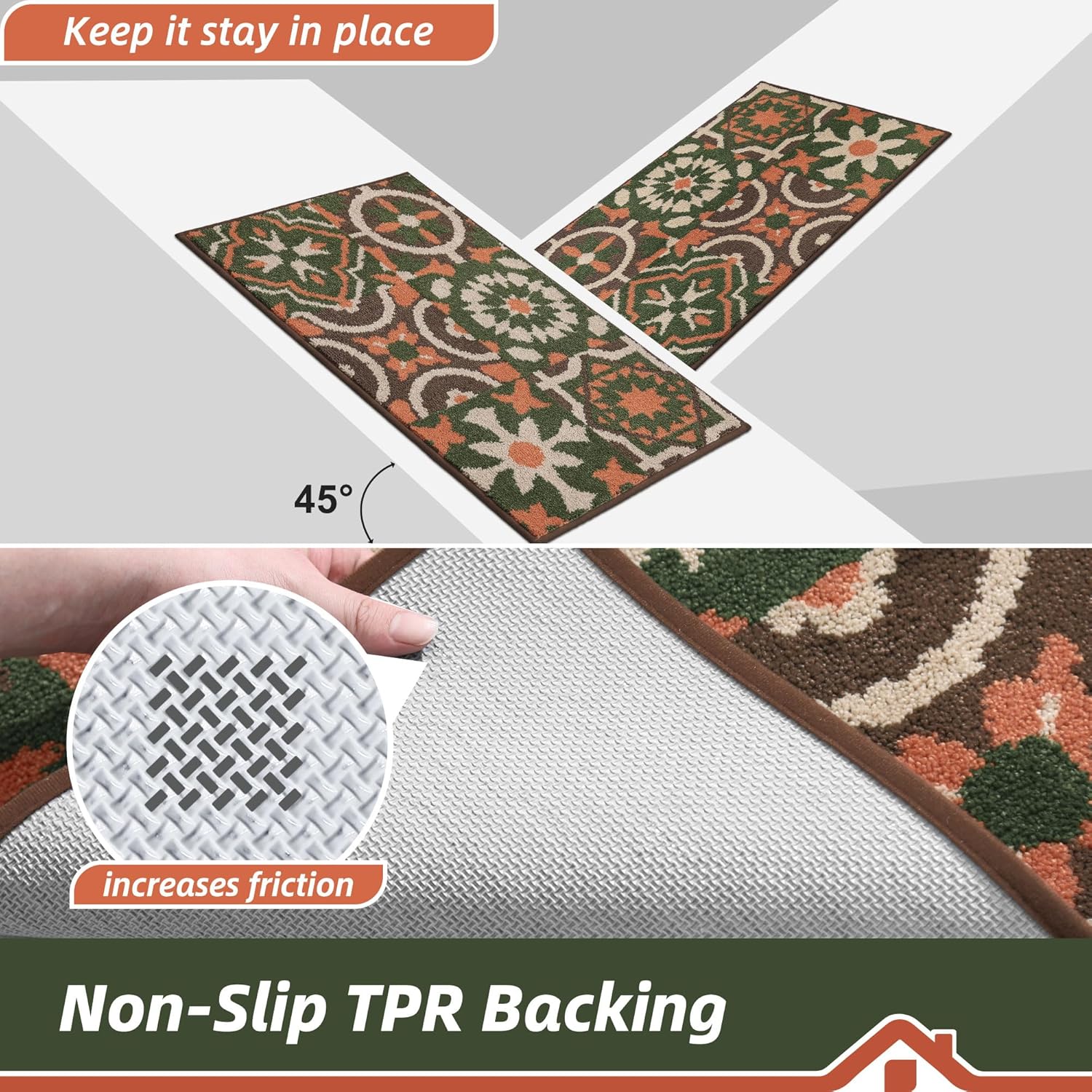 - Stylish and Low Profile Design: Boho geometric floral patterns are suitable for most kinds of home décor. Our doormats measure 20" x 32" x 0.45", low-profile design and reinforced overlock edges to ensure that doors won't get stuck or the door rug go curling. Note: Please confirm the height of the door gap before purchasing