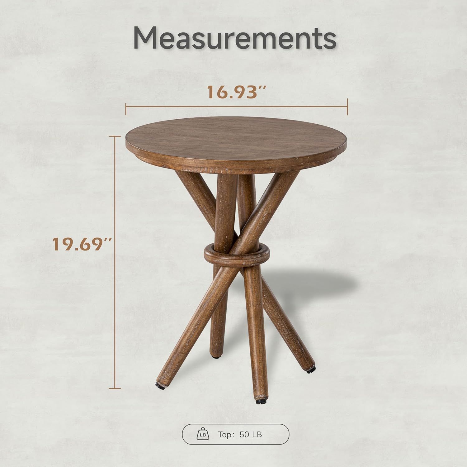 - 【Unique Design】: This end table features a round tabletop paired with creatively bundled legs, offering a unique and playful style that adds charm to any room