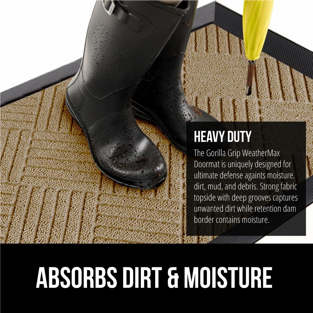- THE ORIGINAL WEATHERMAX ALL SEASON DOORMAT: Gorilla Grip's Original WeatherMax doormat is built tough with a heavy duty, yet soft and flexible construction; deep grooves, beveled rubber border and retention dam help capture dirt, debris and moisture