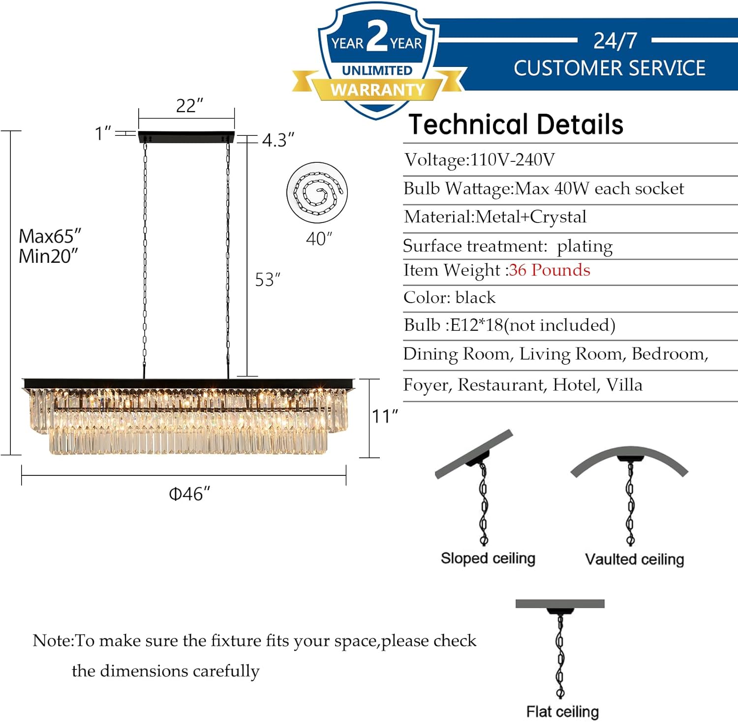 - Easy To Install: The package of the crystal chandeliers for dining room contains all the installation accessories, we also provide detailed installation instructions, please follow the instructions to install, very easy