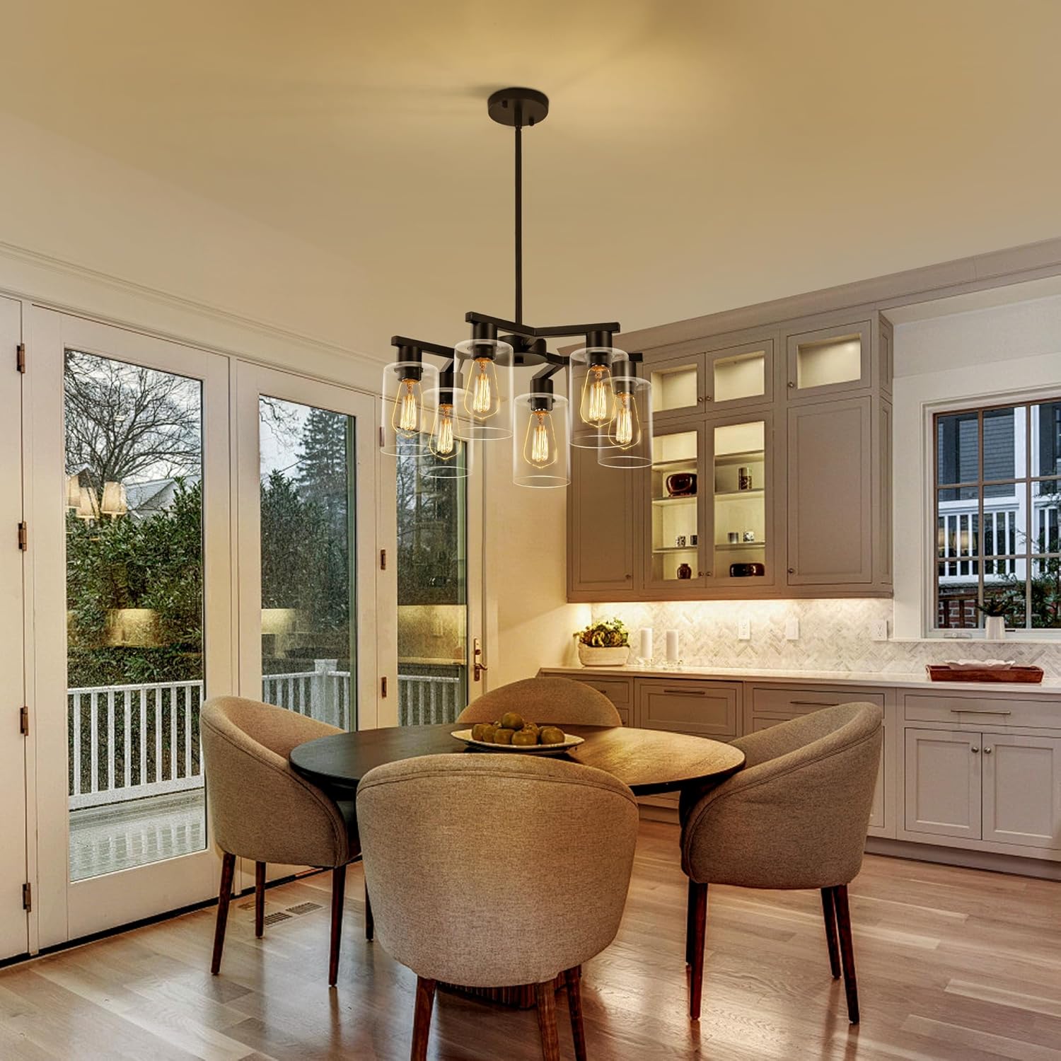 - 【Bulb Requirement】This dining room chandelier features 6*E12 bases that are compatible with various bulb types, such as incandescent, LED, CFL, and halogen bulbs (Bulbs NOT Included). the dining table chandelier also compatible with dimmer, you can use a dimmable bulb to create a warm and relaxed atmosphere (Dimmer switch need to buy separately). The 6-lights design doubles the brightness and casts a softer and more abundant light, adding to your home!