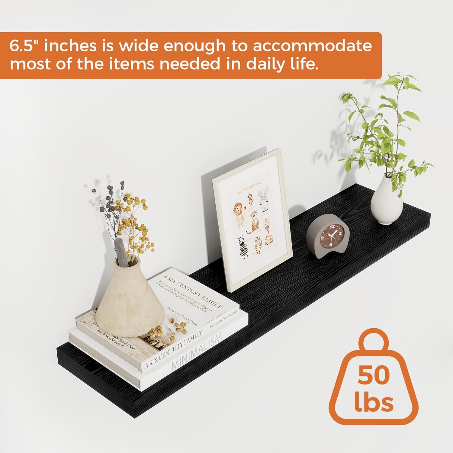 Fun Memories Floating Shelves for Wall, 27.5" Rustic Wood Deep Wall Mounted Shelves with Invisible Brackets for Decor & Storage, Floating Shelf for Living Room, Bathroom (Black, Set of 2)