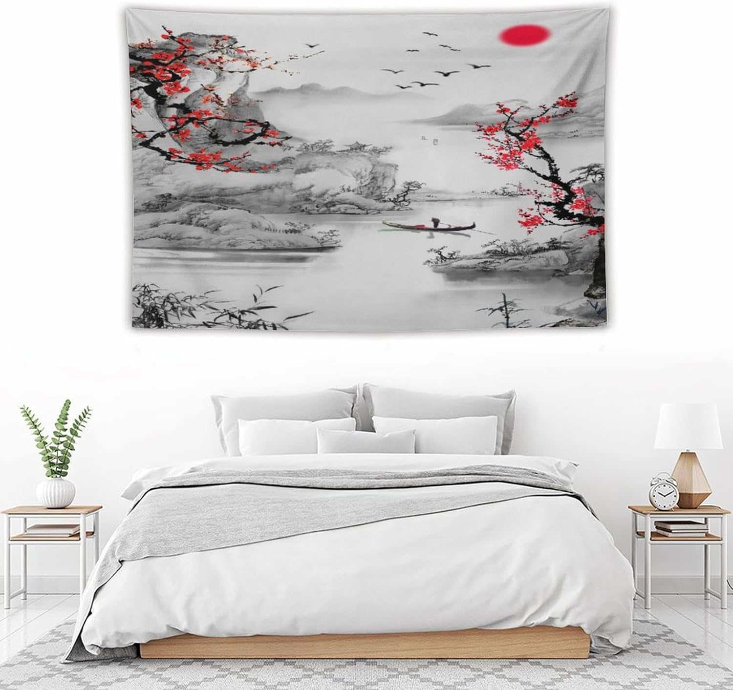 Cherry Blossoms Tapestry, Japanese Red Landscape Watercolor Abstract Art, Asian Japanese Wall Tapestry, Nature Landscape Tapestries for Bedroom Living Room Decor 60"x40"