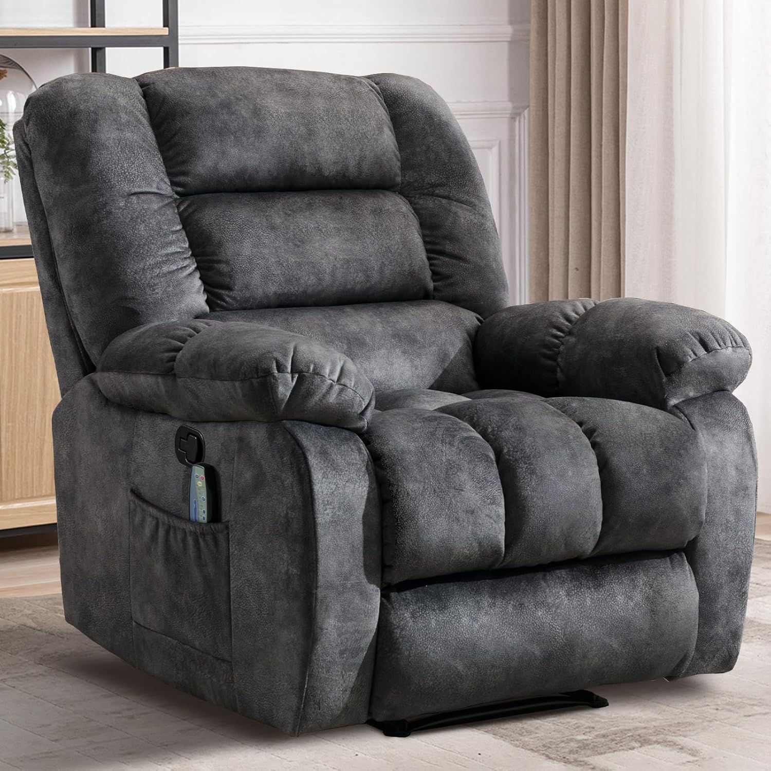 - ăMassage & Lumbar HeatingăRelax in comfort with 8-point massage functionality and lumbar heating. This recliner targets key areas for your back, lumbar, thighs and legs to improve blood circulation, relieve tension, and reduce fatigue. Choose from 3 massage modes and adjustable intensity levels to customize your relaxation. The built-in timer lets you set 15, 30, or 60-minute heating sessions for convenience.