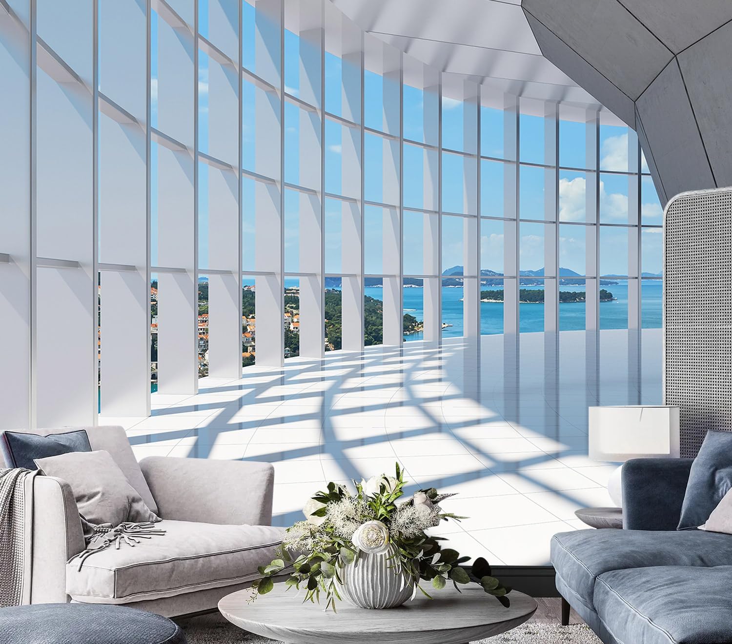 AFZEVEB-3D Blue Seascape Wallpaper Space Wall murals for Bedroom 114"x74" (Not Peel and Stick)