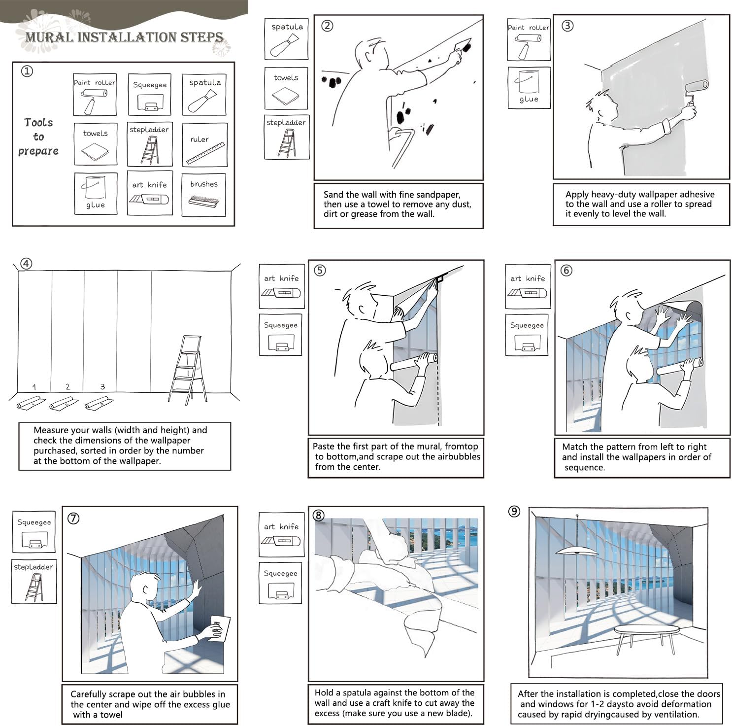 - Tips: Mural can not be peeled and pasted, you need to buy a heavy duty wallpaper glue