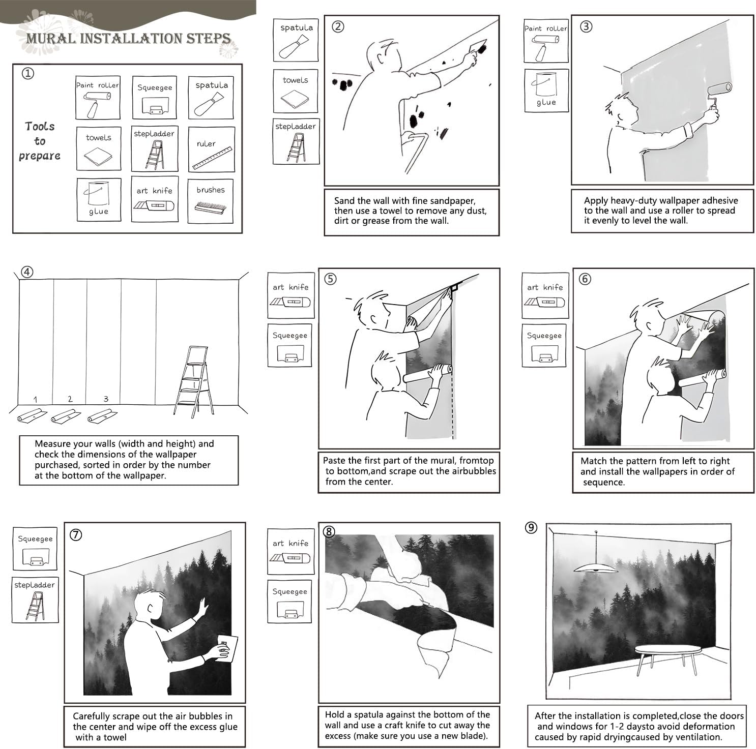 - Tips: Mural can not be peeled and pasted, you need to buy a heavy duty wallpaper glue