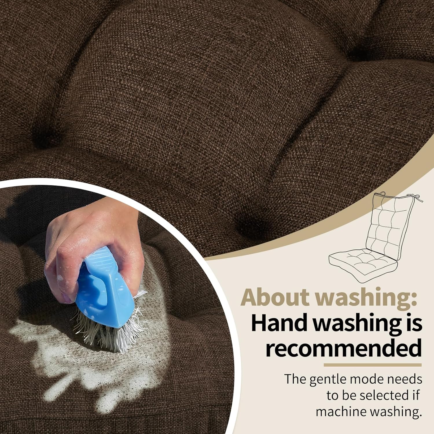 BUYUE Chair Cushion Set for Rocking Chair, Back Pillow & Seat Cushion with Ties, Original Woven Fabric Non-Slip Chair Pads for Elderly Sitting, Chocolate