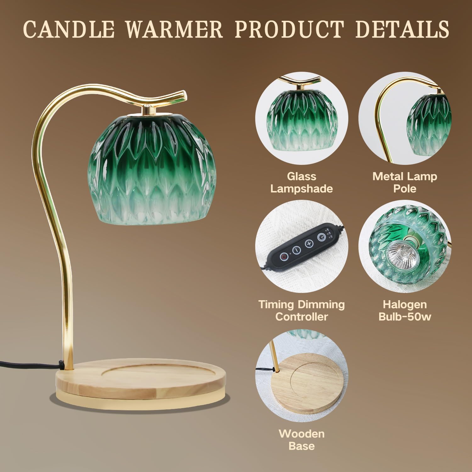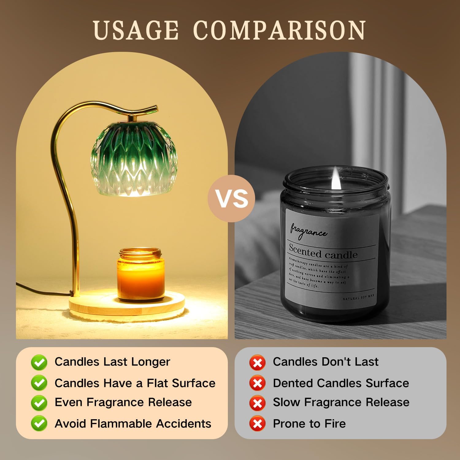• 【Fit All Size Candles & Perfect Home Decor】The wax warmers with 6.6inch wooden base and height adjustment compatible with all size candles. Good choice for those who are in apartments not allowed open-flame candles. The candle warmer adopts a Retro style design and is a delicate functional decorative lamp, suitable for living rooms, bedrooms, offices, yoga rooms, cafes, etc. It can also be used as a bedside lamp to create a sleep-inducing atmosphere.