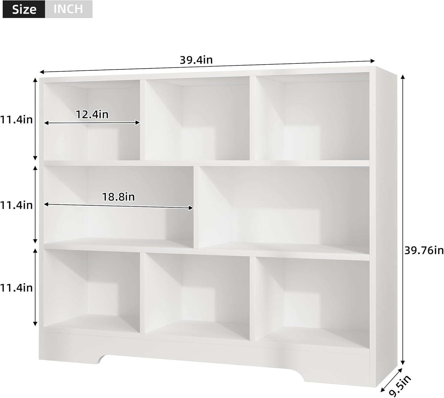 Book Shelf Set of 2, 8 Cubes Storage Organizer, 3-Tier Open Shelf Wooden Bookcase, Freestanding White Bookshelf Cube Shelf for Bedroom, Living Room, Home Office