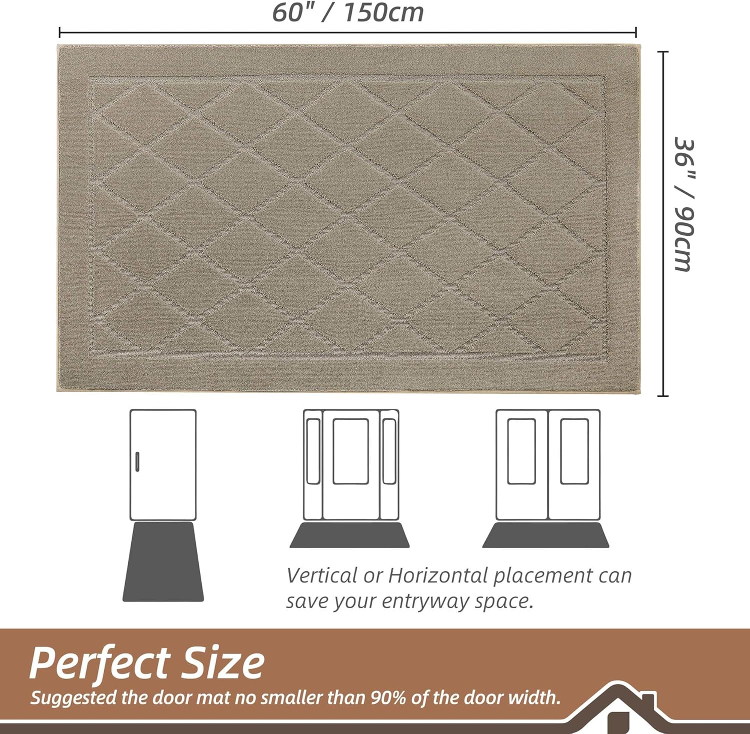 - Stylish and Low Profile Design: Fashionable geometric patterns are suitable for most kinds of home décor. Our doormats measure 36" x 60" x 0.45", low-profile design and reinforced overlock edges to ensure that doors won't get stuck or the door rug go curling. Note: Please confirm the height of the door gap before purchasing