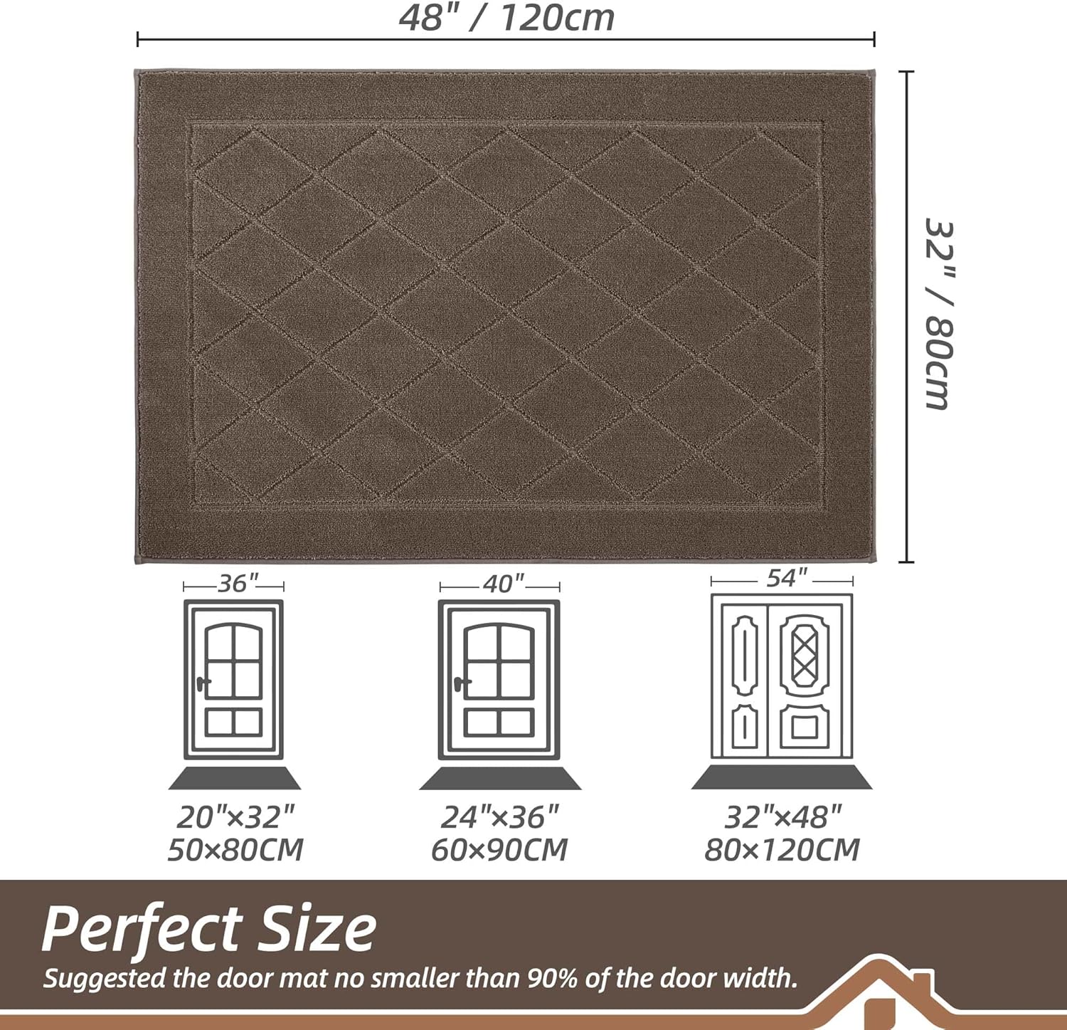 - Stylish and Low Profile Design: Fashionable geometric patterns are suitable for most kinds of home décor. Our doormats measure 32" x 48" x 0.45", low-profile design and reinforced overlock edges to ensure that doors won't get stuck or the door rug go curling. Note: Please confirm the height of the door gap before purchasing