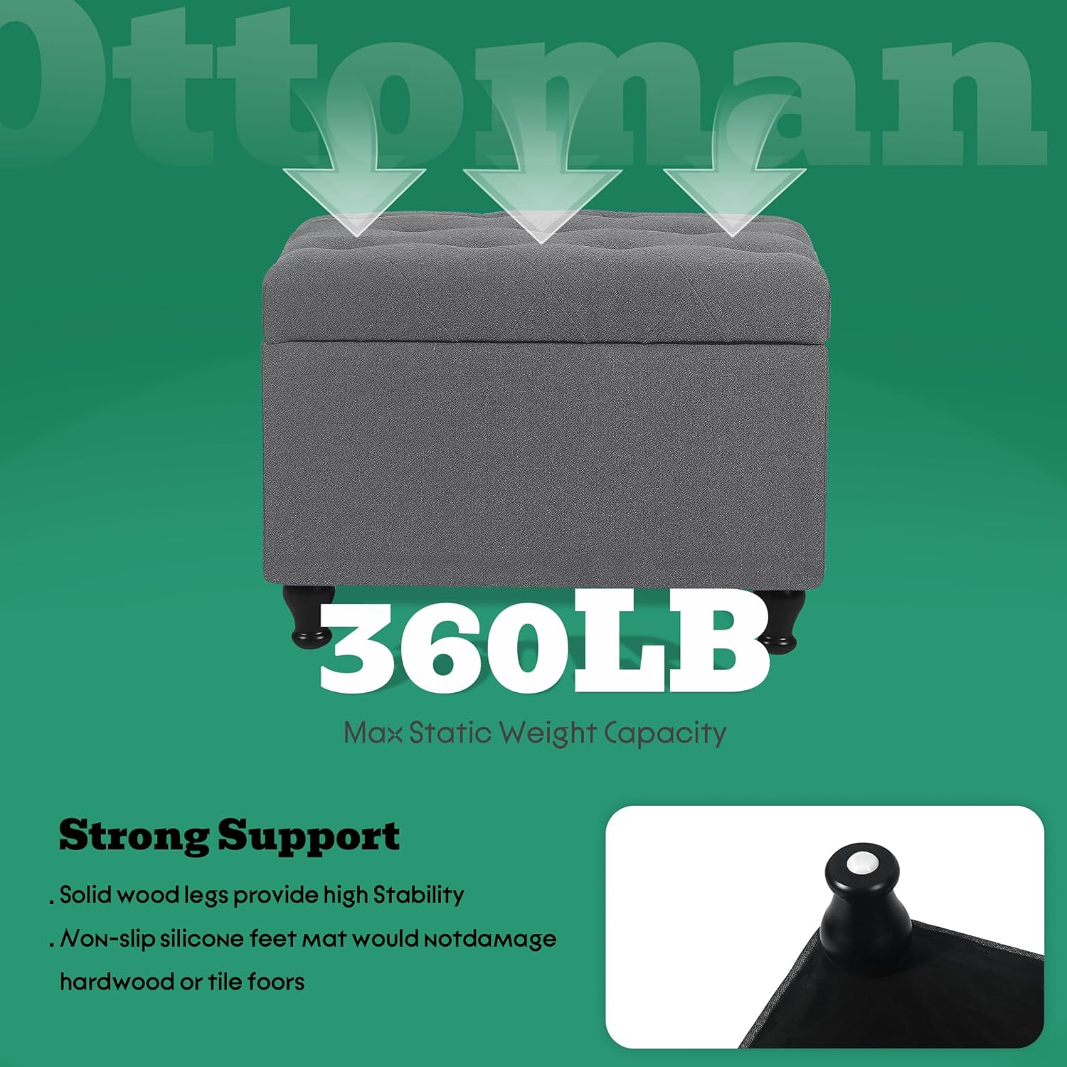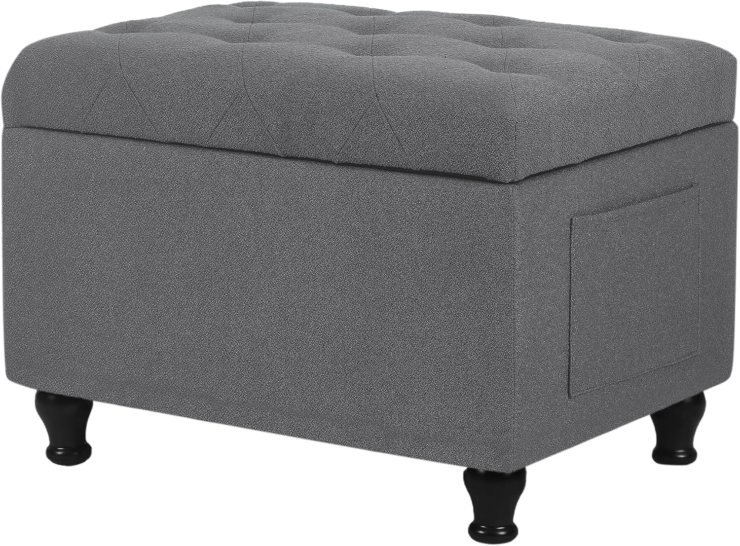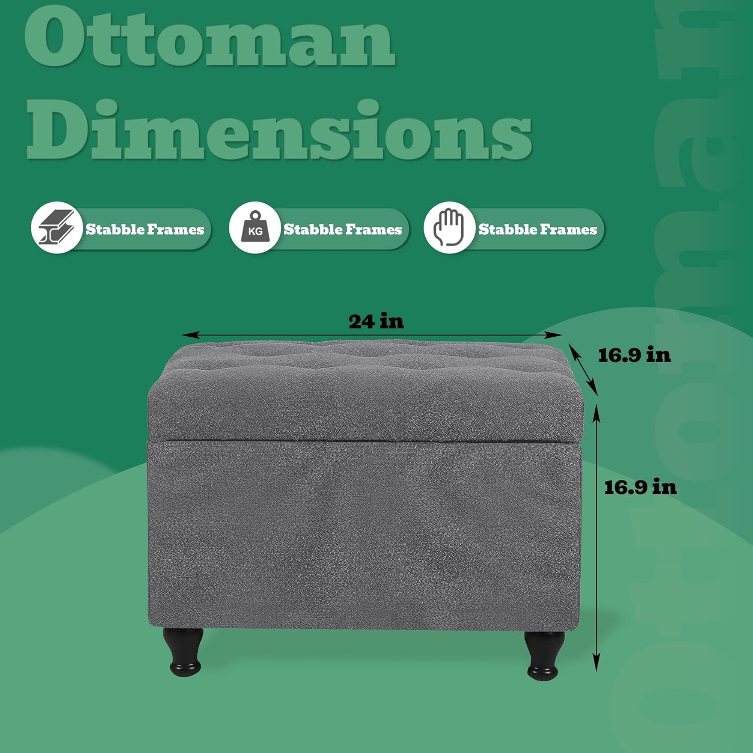 Ottoman with Storage 24'' Storage Ottomans Fabric Ottoman Footstools Small Upholstered Foot Rest Stool for Couch, Living Room, Bedroom, Entrance Shoe Bench Grey