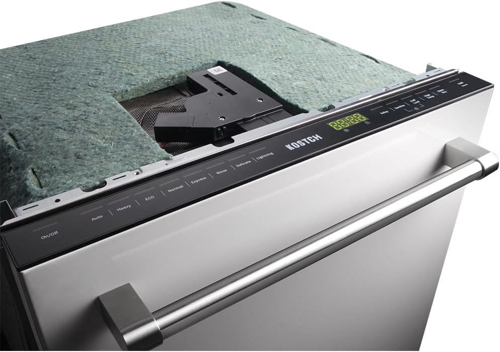 - Featuring 3 high-performance spray arms—Top, Upper, and Lower—the KOSTCH dishwasher ensures complete coverage for a thorough wash. The multi-directional water jets reach every corner of your dishes, effectively removing food residues and stains. No matter where items are placed, they’ll come out clean and shiny.