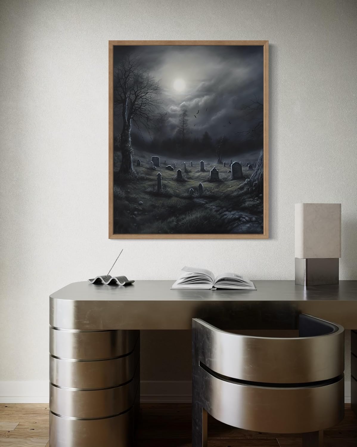 Gothic Graveyard Poster Art Print, Halloween Scary Vintage Wall Art Academia Spooky Painting Decoration for Horror Prints, Posters Bedroom Decor 89 (Gothic Graveyard, 16 x 20 inches, Wood Frame)