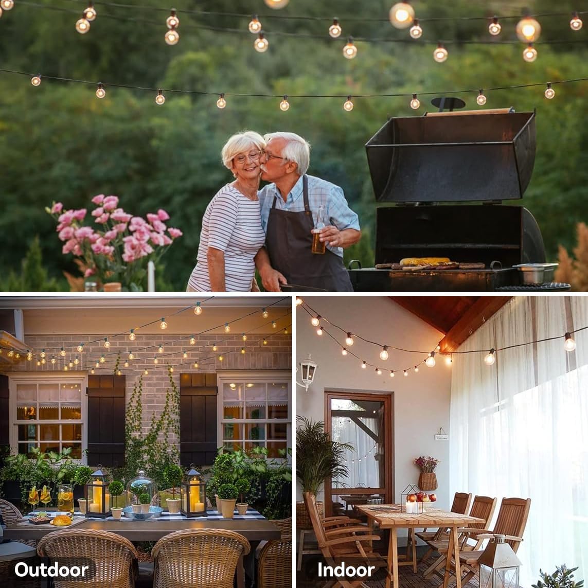 - Connectable and Portable: The bulbs are spaced 1.5 inches apart, and the total length is 25 feet. patio lights have end-to-end connections, each set has 12 hanging sockets with a male plug at the start. You can connectable up to 1000FTs, Easy to carry and store