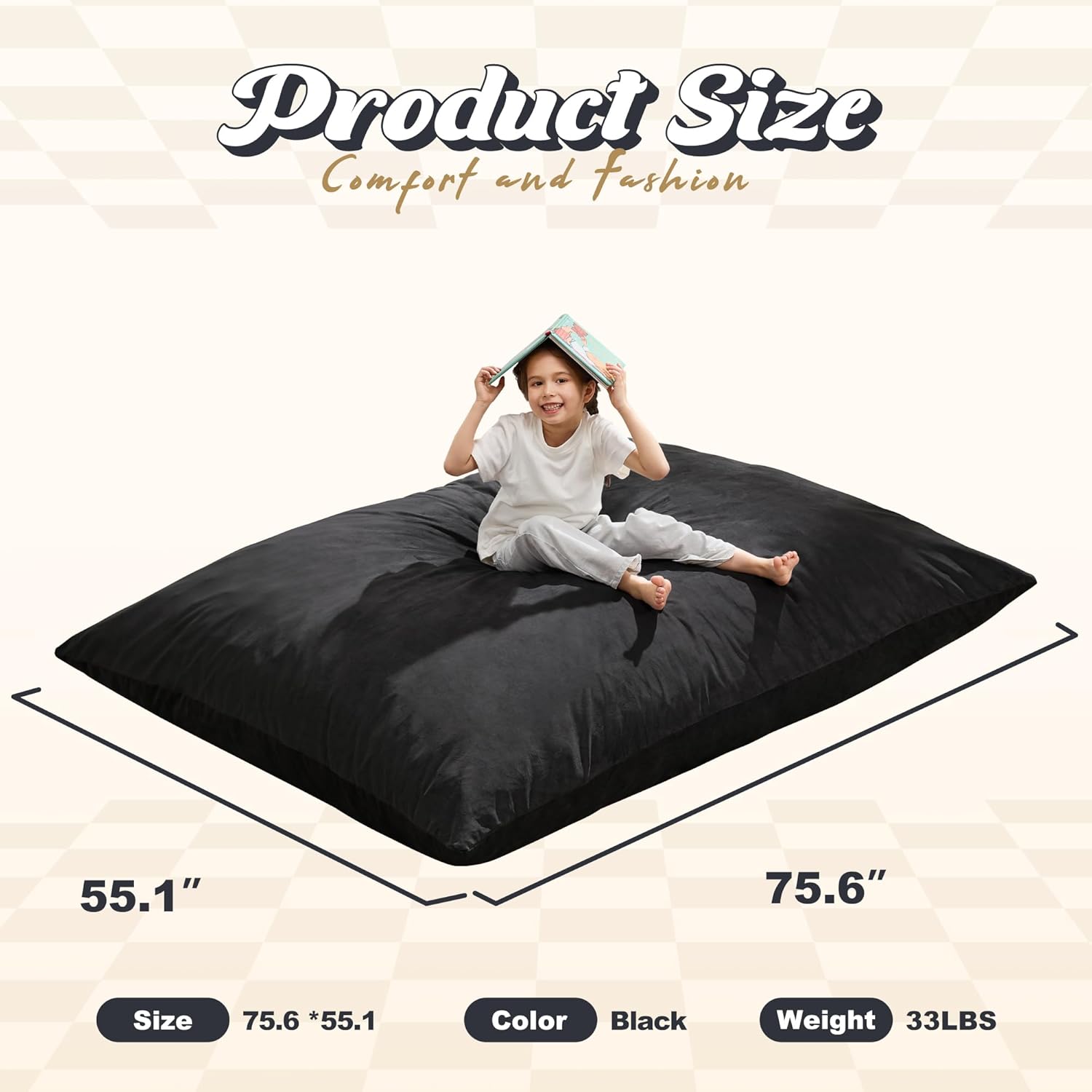 - Memory Foam Bean Bag Chair: The 3-in-1 giant bean bag chair stands out with its high-density memory foam filling, it can bounce back quickly, not only provide comfort but also support. The thickness of the bean bag is up to knees when you lay it down flat.