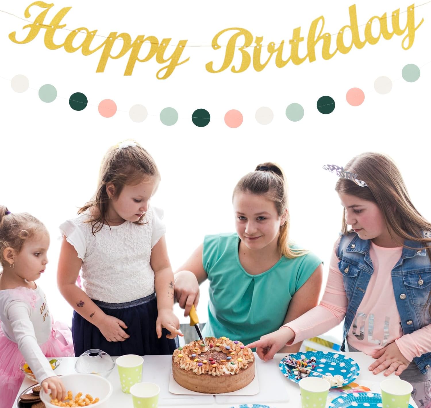 - 【Sage green pink birthday decorations kit includes】The party decorations kits include 8pcs sage pink white paper flower, 2pcs green fans,2pcs 8" white lanterns, happy birthday garland and sage pink white streamers.