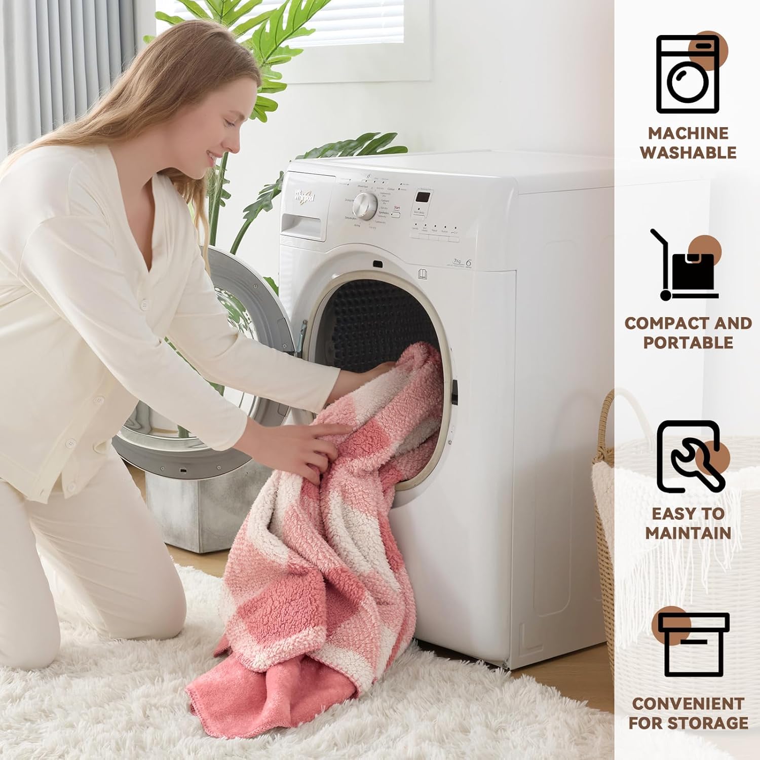 LURKA Checkered Sherpa Fleece Throw Blanket - Extra Thick and Warm Winter Soft Fuzzy Plush Blanket for Couches, Beds & Pets, Powder Pink, 50x60 Inches