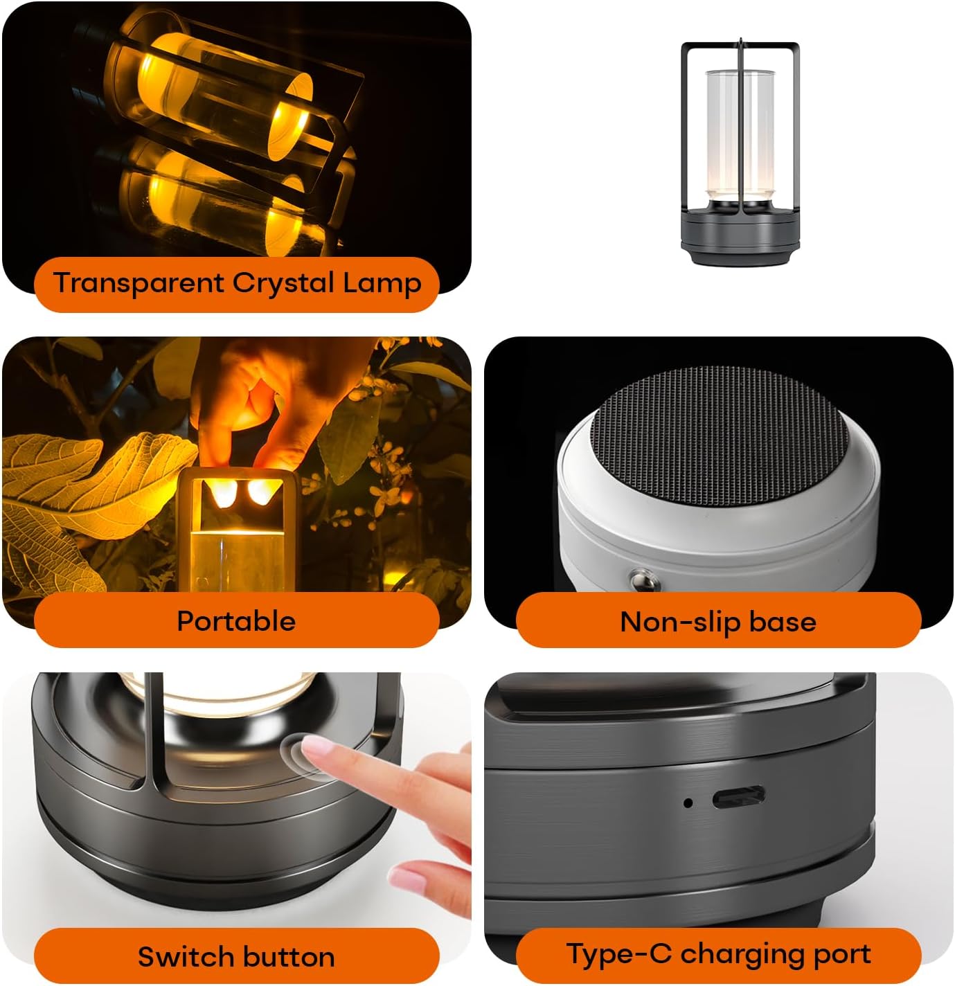 - 💚 [ A perfect gift idea ]: Our touch light lamp can match a variety of scenes and styles while making a great gift. It can be used as an ambient light for Thanksgiving, Christmas and birthday parties. The rechargeable cordless led table lamp is suitable for bedroom, bedside table, office, restaurant, cafe, bar, hotel, outdoor patio lighting, etc.