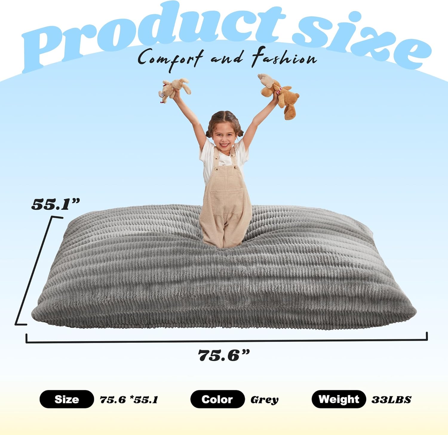 - Memory Foam Bean Bag Chair: The 3-in-1 giant bean bag chair stands out with its high-density memory foam filling, it can bounce back quickly, not only provide comfort but also support. The thickness of the bean bag is up to knees when you lay it down flat.