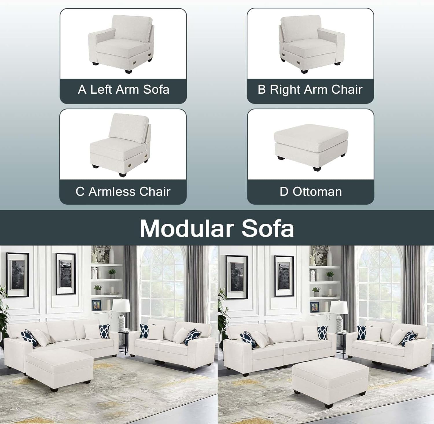- 【Deep and Wide Seats】Our modular sectional couch has wide armrests and deep seats to provide you with a comfortable lounging space. The sofas for living room and footstool combine to form an oversized corner seat, providing you with a spacious sitting and sleeping space, and you can easily move the ottoman to your desired position. And the sectionl couch's cushion and backpack are removable, which is convenient for you to clean and maintain.