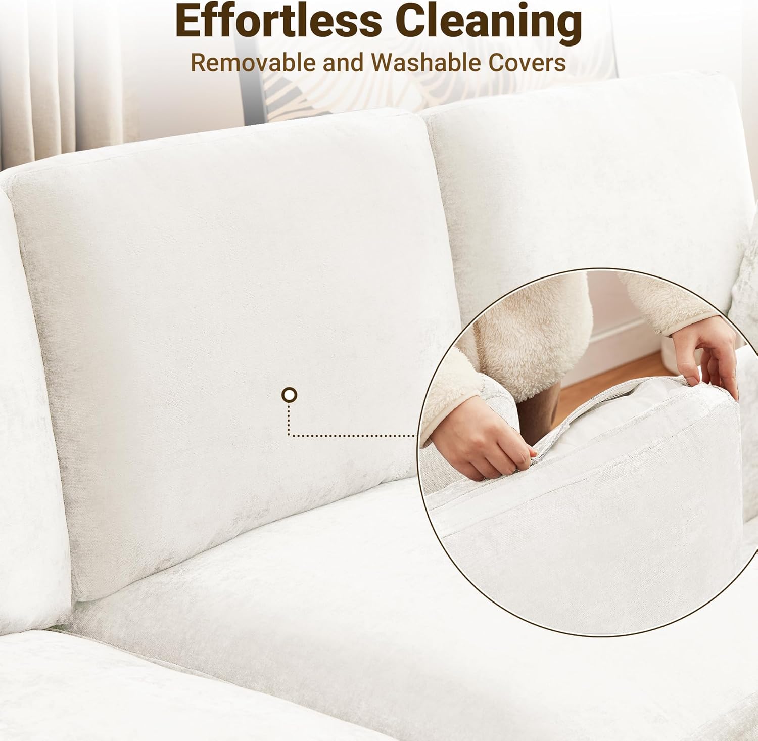 - Effortless Maintain - This white couch comes with detachable, machine-washable cushion covers for easy care. The high-quality foam cushions are compressed – simply unpack and allow 24-48 hours for them to fully expand. Helpful hint: Gently fluff and massage the cushions to speed up the process!
