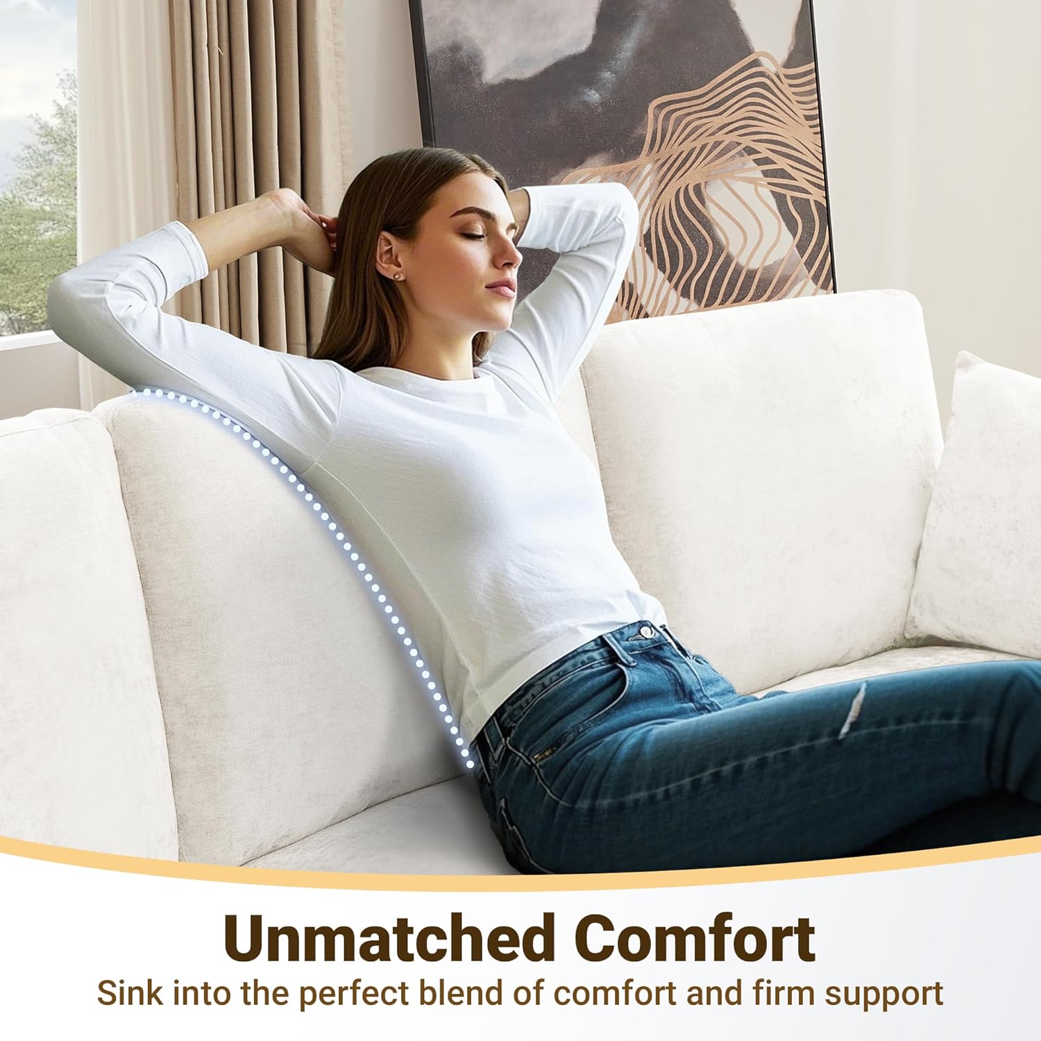 - Cloud-Like Comfort - Crafted with high-density foam and quality springs, this cloud couch delivers adaptive support, prevents sagging while maintaining shape. Enjoy balanced softness, pressure relief, and long-lasting durability—ideal for your living room. Relax in ultimate comfort!