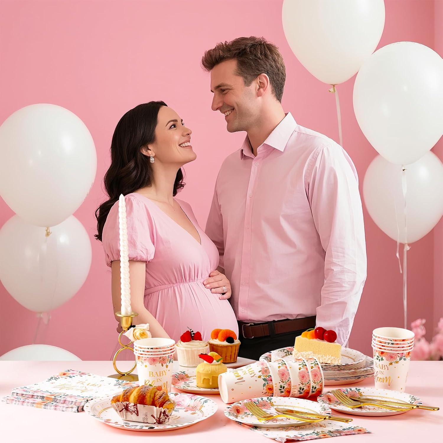 - 【Floral Baby Shower Decorations】This pink baby shower decorations for girl features pink flowers + sage green and "Baby in Bloom" gold dots design. The green and gold dots complement each other in the sun, emitting a dazzling glow. The sage green leaves and flowers and the elegant gold design create a very warm and soft baby shower plates and cups and napkins sets.