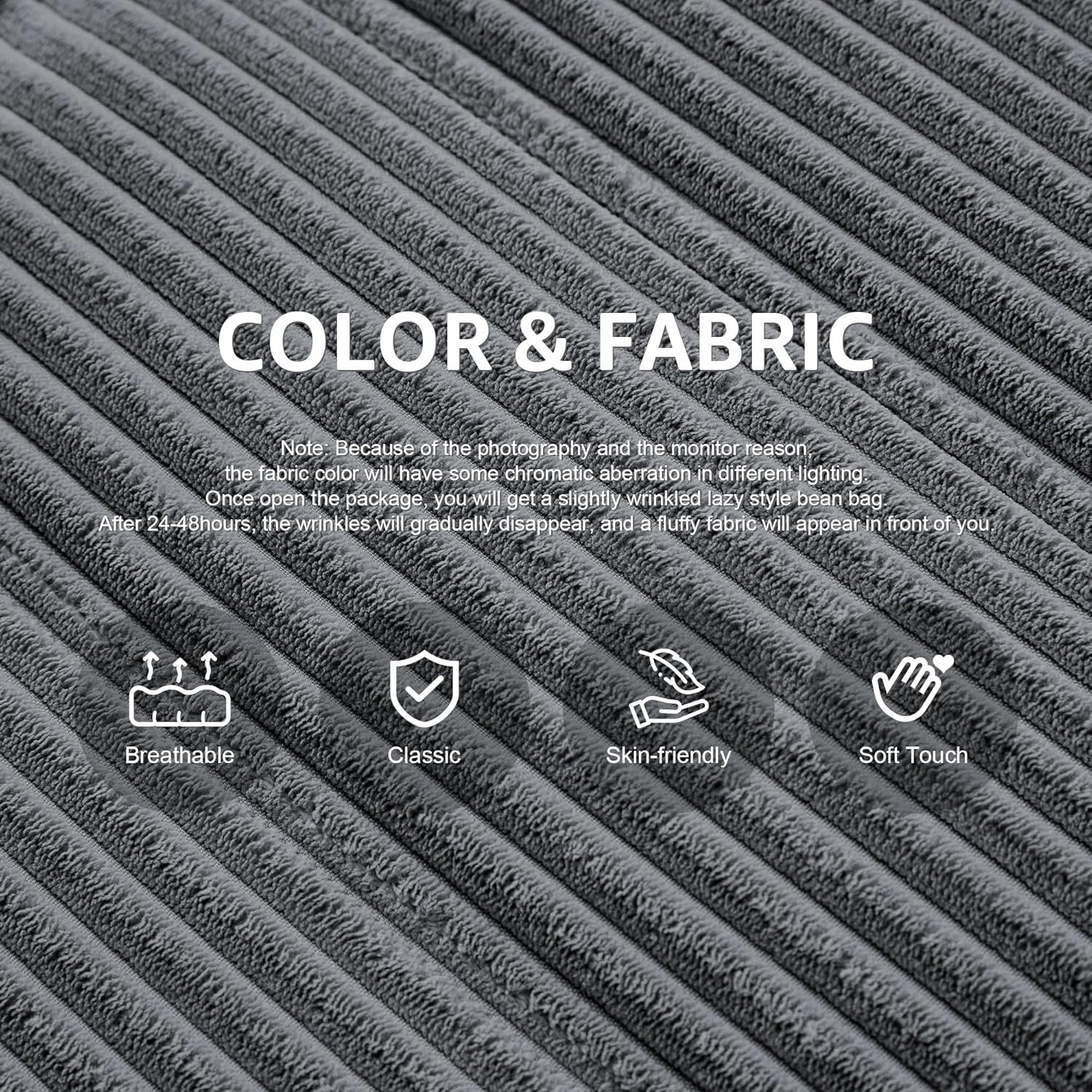 - No Assembly Required: Comes with a small compressed package, our lounge chair is no need to assemble, just open to take out, you will get a slightly wrinkled and old-fashioned lazy style bean bag. After ironing, the wrinkles will gradually disappear, and a glossy sofa will appear in front of you. Enjoy a happy hour with friends, family.