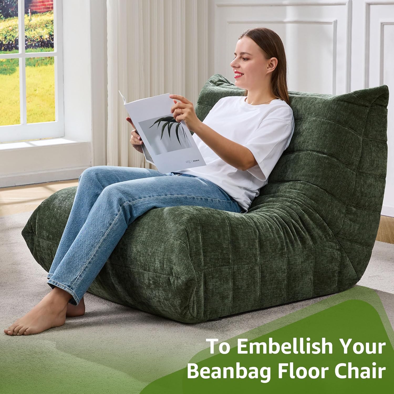 Bean Bag Chairs for Adults Giant Bean Bag Chair Memory Foam BeanBag Chair Big Bean Bag Sofa with Filler Faux Fur Fireside Beanbags Lazy Sofa for Living Room Bedroom Dorm Office (Green Chenille)