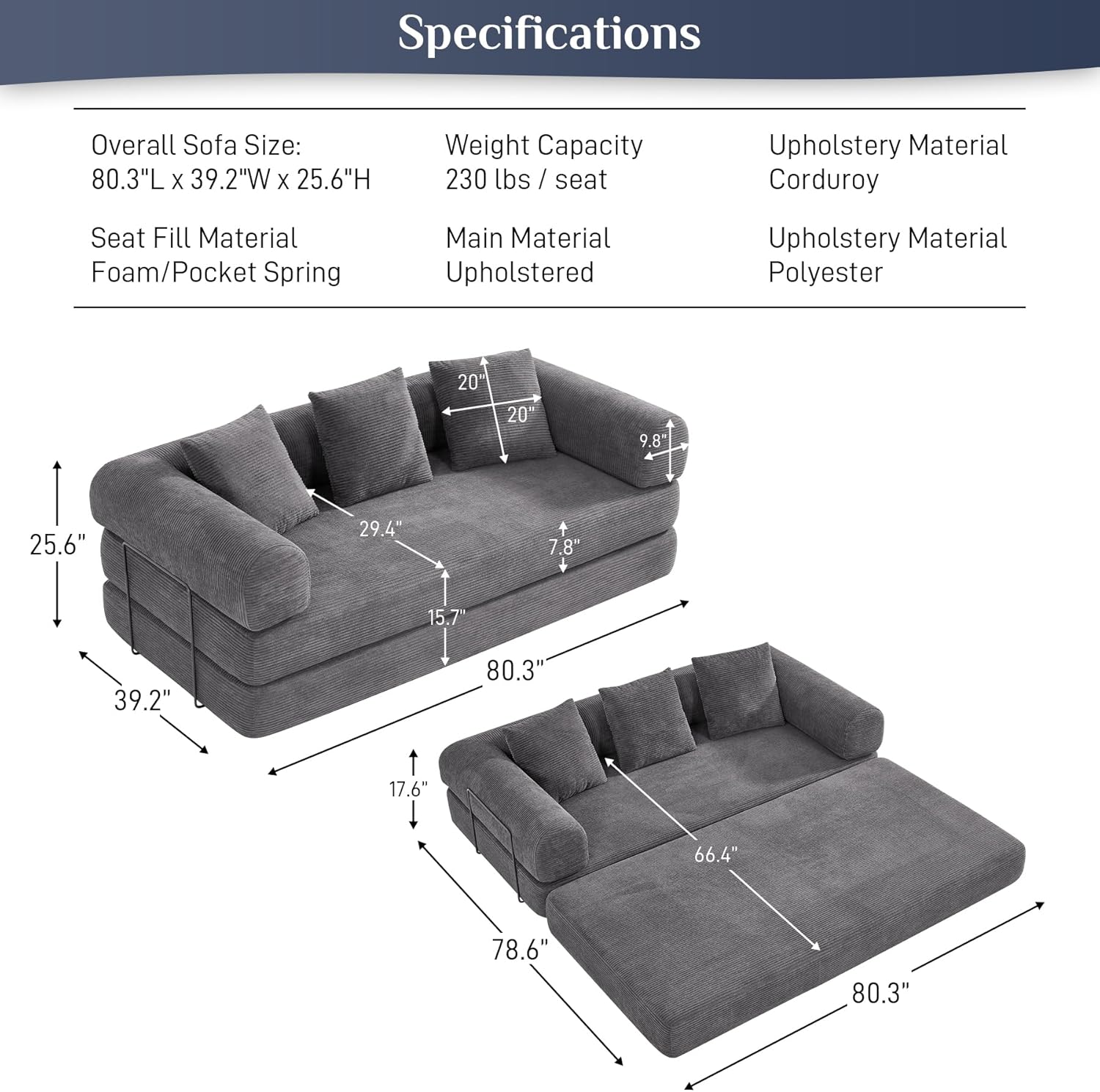 - Corduroy Sleeper Sofa with Effortless Setup and Easy Use: Say goodbye to complicated assembly! This corduroy sofa bed is designed for immediate use—just unfold and enjoy. Its tiered, multi-functional layout provides maximum versatility, transforming any living area into a stylish, cozy retreat with no hassle. Perfect for those seeking a functional, easy-to-set-up solution for their living space.