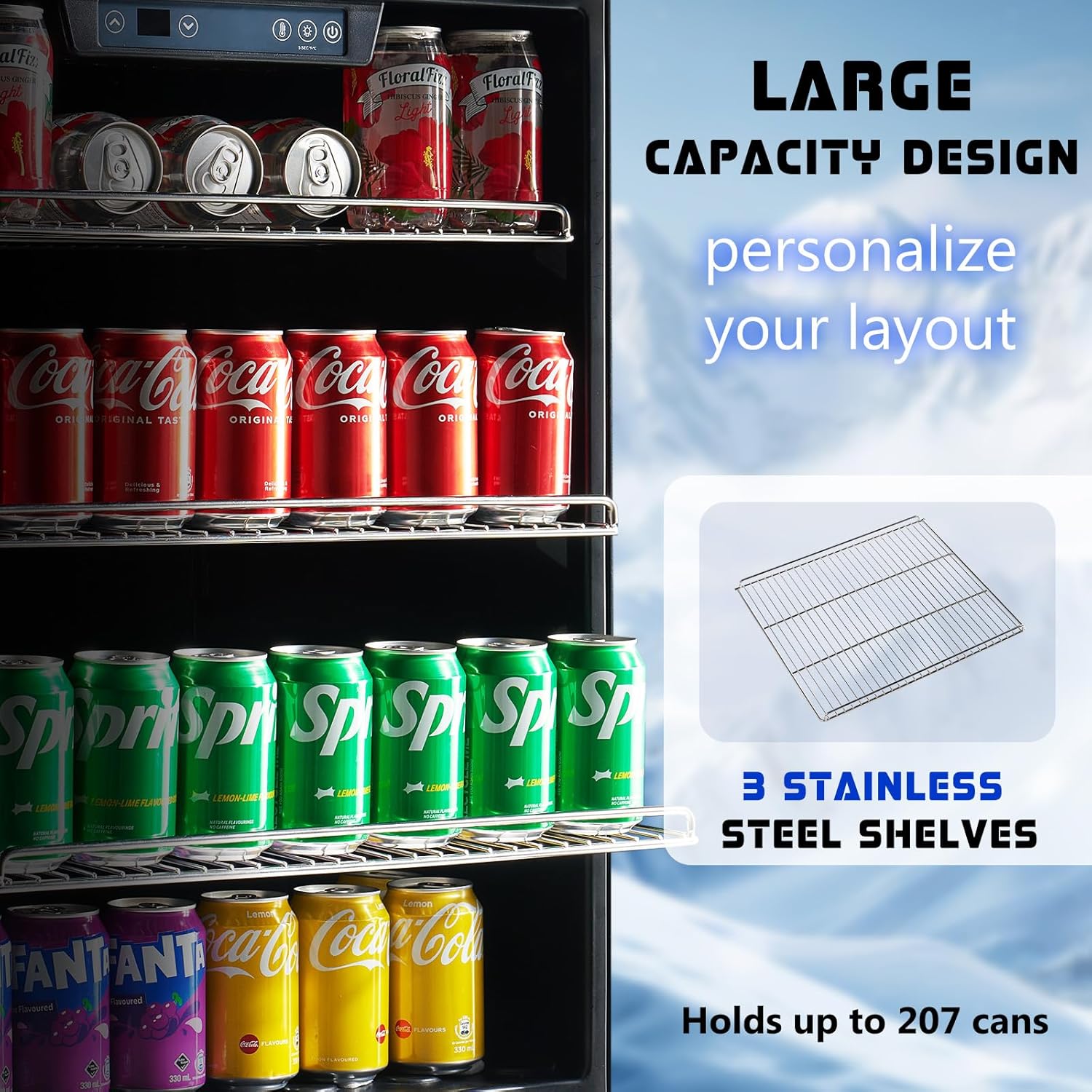 - Customizable Storage Design: With adjustable shelves and doors that can be freely installed left or right, the beverage refrigerators adapt to your needs. The durable 304 stainless steel door construction adds elegance and longevity.