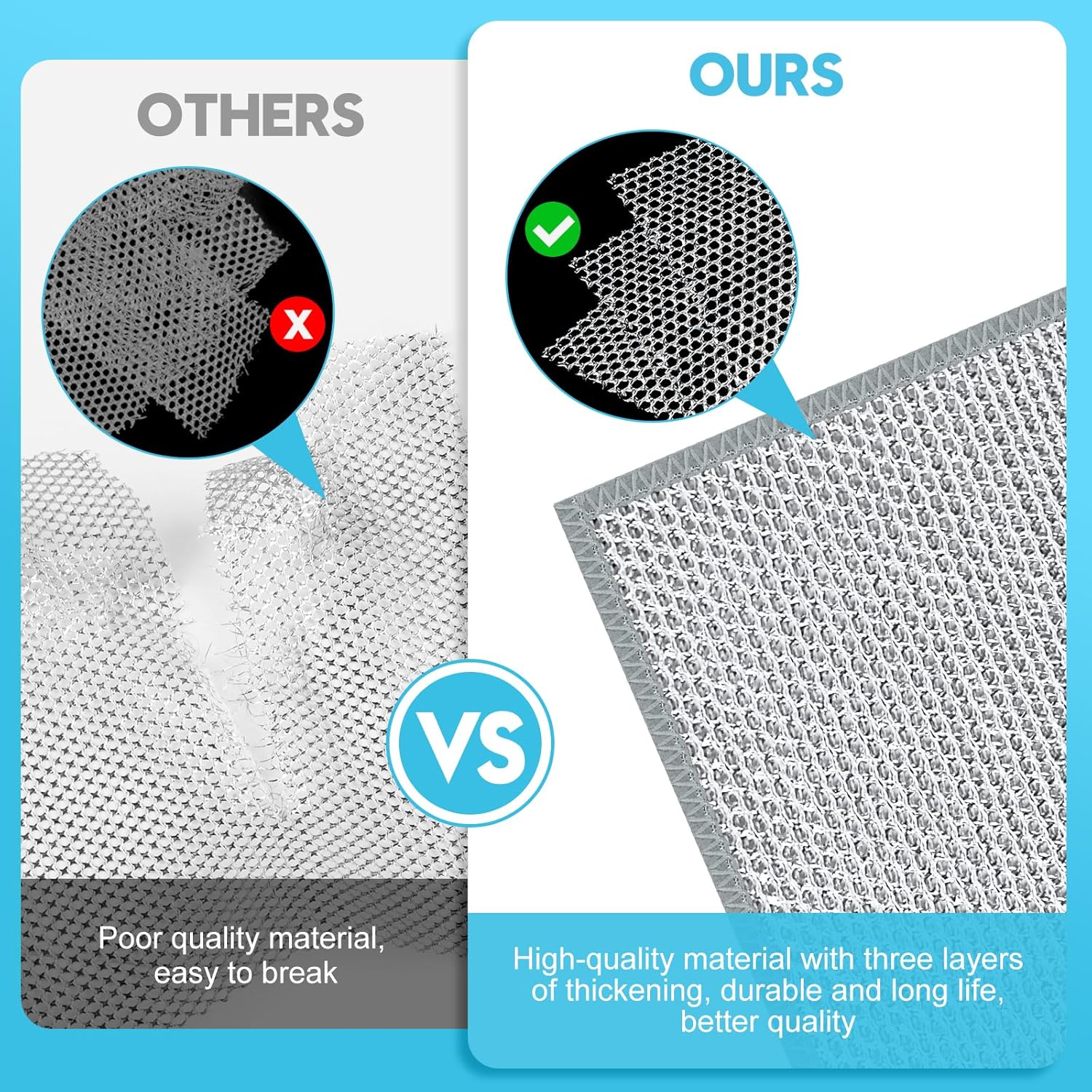 10 Pcs New Upgraded 3 Layers Non Scratch Wire Dishcloth, Multipurpose Wire Dishwashing Rags, Wet & Dry for Cookware, Sinks, Dishes, Stoves & Fireplaces 9.87“ x 9.87”