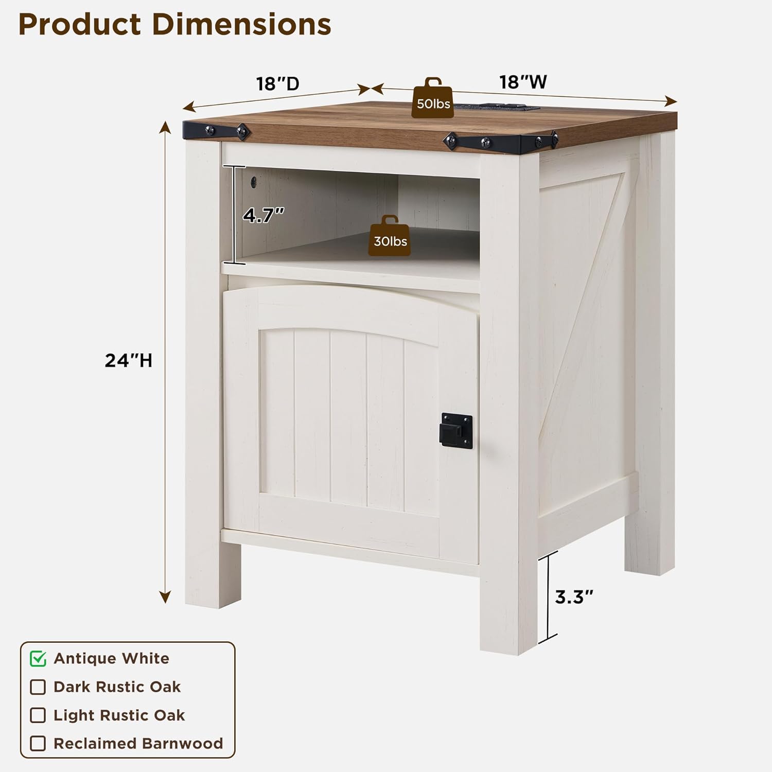 OKD Nightstand with Charging Station Set of 2, 18 Inchs Farmhouse End Table with Adjustable Storage Shelf, Rustic Wood Sofa Side Table for Bedroom