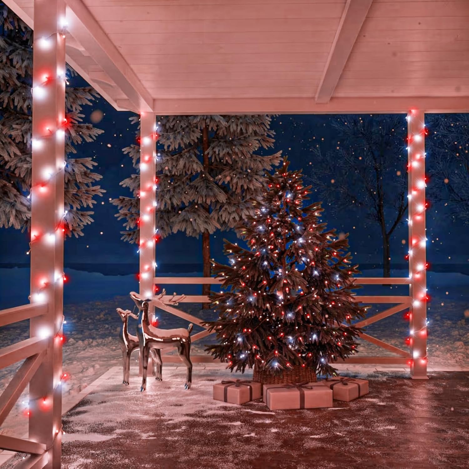 - Waterproof Fairy Lights Plug in: The red and white Christmas lights design with IP44 outdoor waterproof, can withstand wind, snow, rain and extreme weather. String lights are equipped with a UL certified 29V low-voltage plug ensures the safety. It's safe for family with kids or pets!