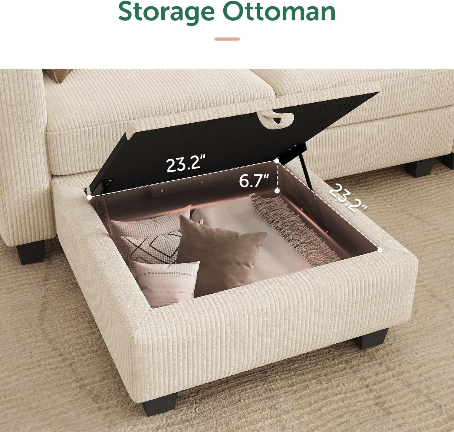 HONBAY U-Shaped Corduroy Sectional Couch with 6 Seaters Modular Sectional Sofa with Storage Ottoman Sectional Couches for Living Room, Beige