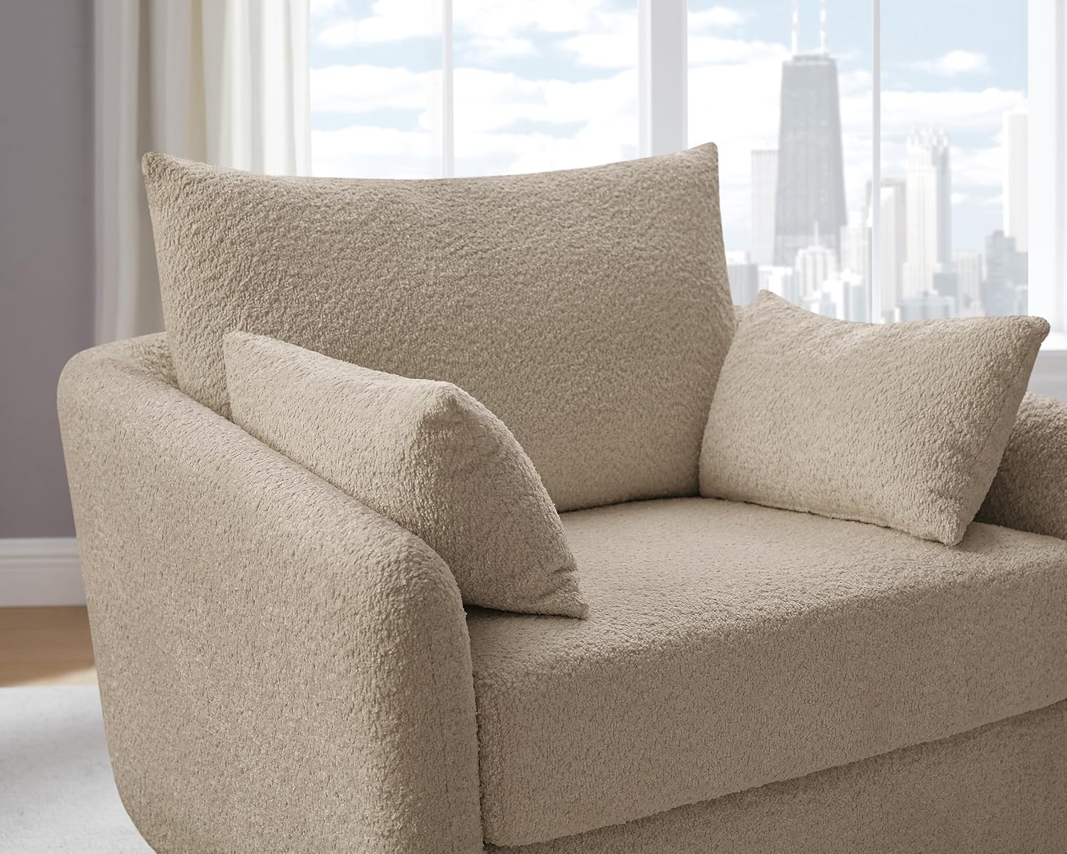 360° Swivel Accent Armchair, 39.3" Oversized, Sherpa Boucle Fabric Sofa Chair with Removable Back & Arm Pillows, Swivel Chair with Cozy Soft Padded, No Assembly Required (1, Camel)