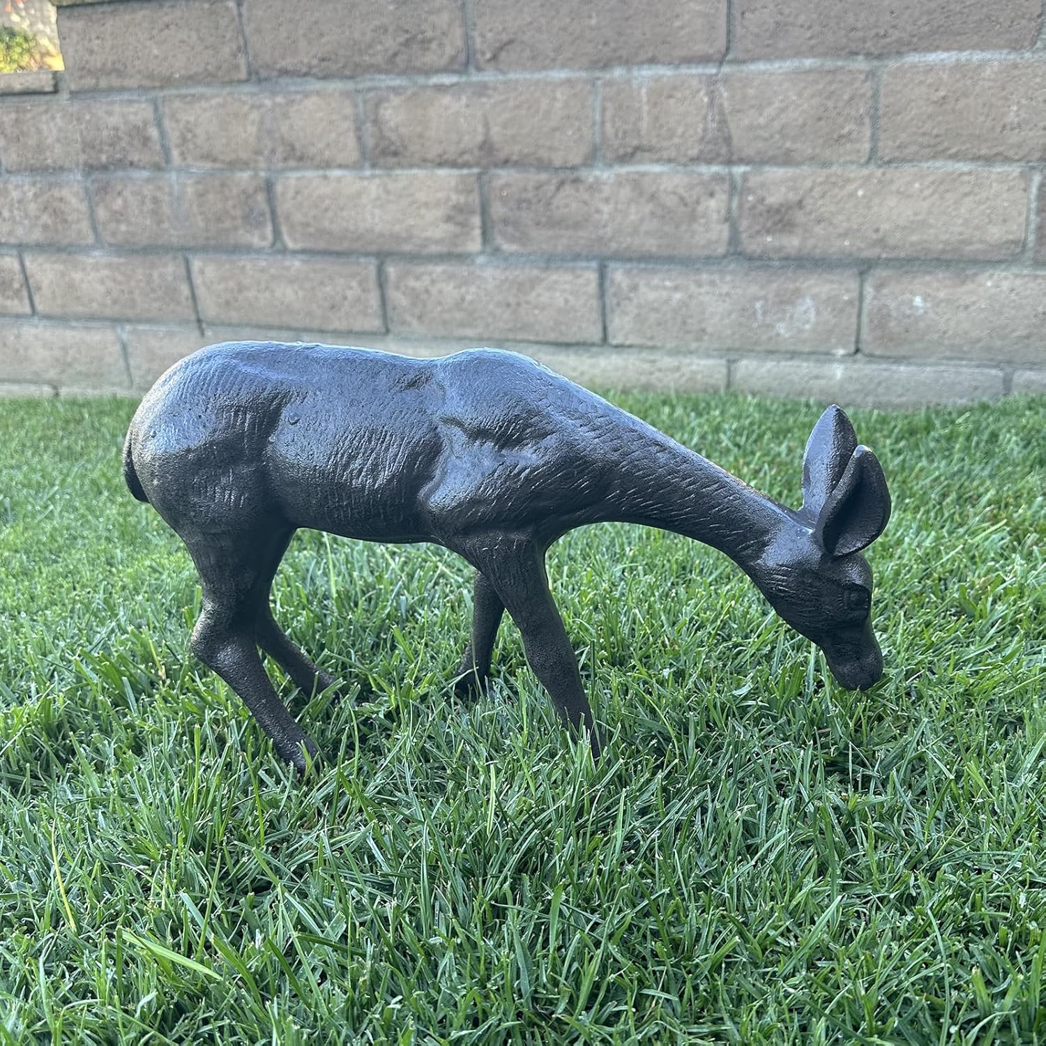 Cast Iron Deer Sculpture(11.4" Tall), Realistic Lawn Garden Decor Statue, Lifelike Grazing Deer Figure, Outdoor/Indoor Decorative Art, Metal Animal Ornament HC3672