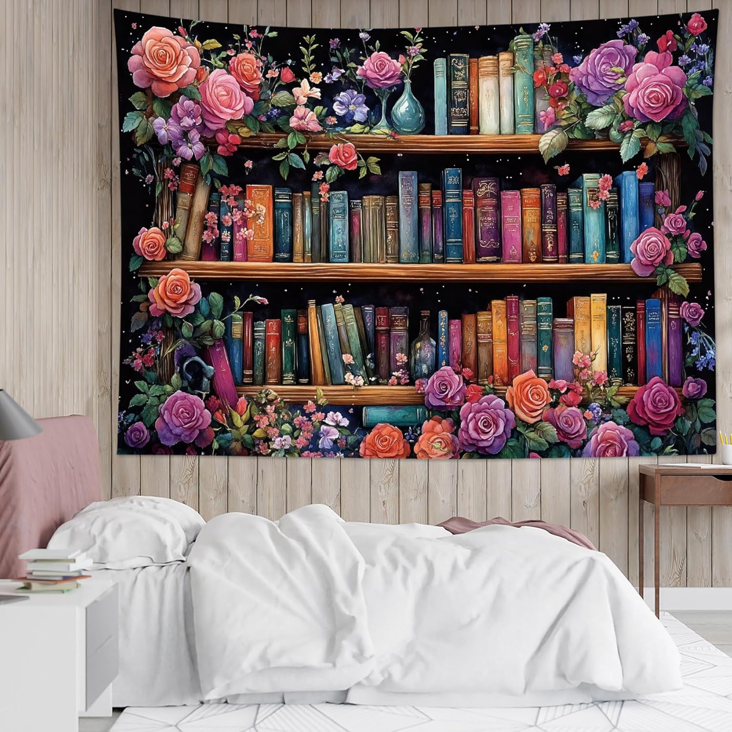 - DESIGN :The Bookshelf Floral Tapestry adopt HD digital printing,Donβt worry about fading,vibrant colorful design will light up your room!