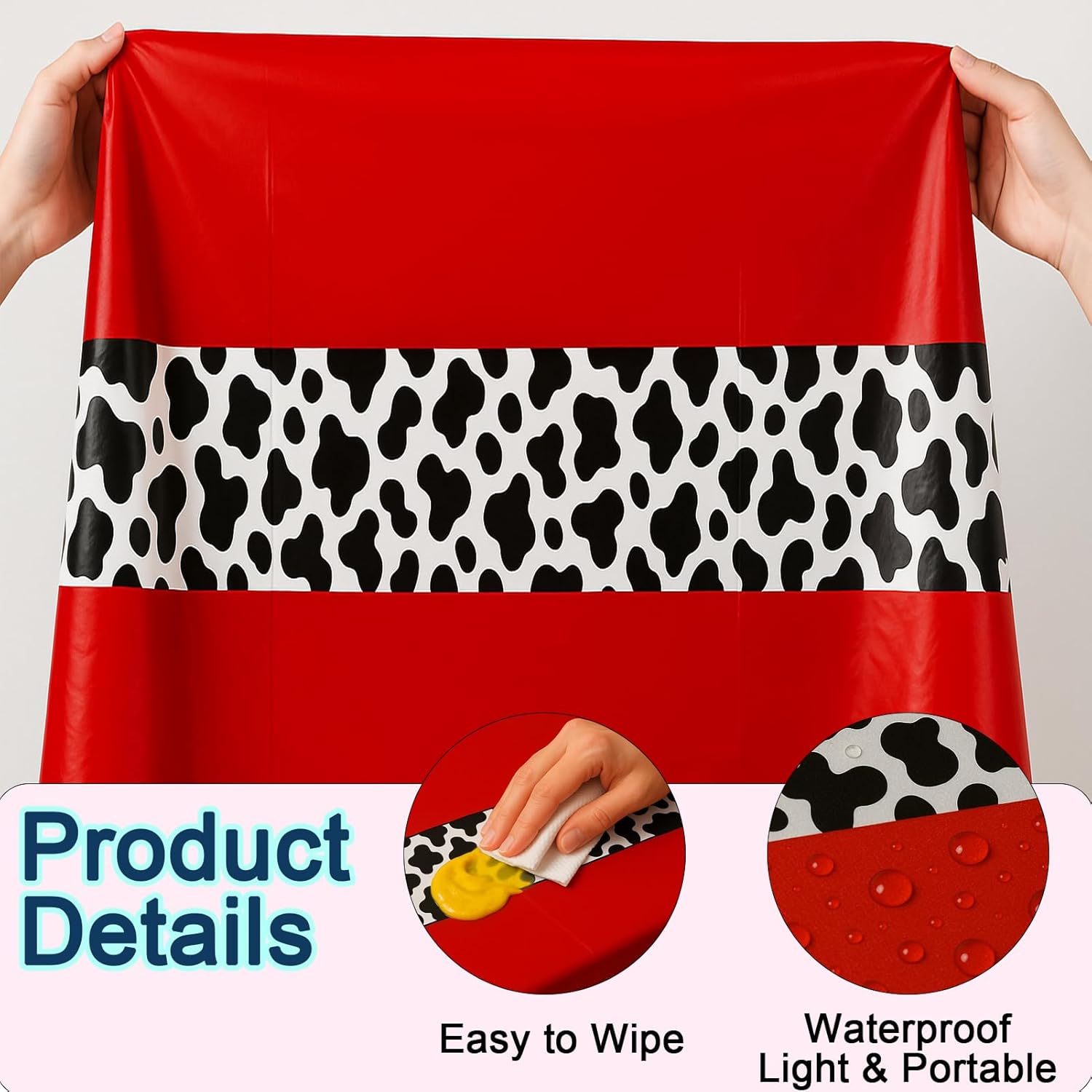 - Adorable Red Cow Pattern: Our playful tablecloths feature a delightful mix of black and Red cow spots, creating a whimsical country-chic aesthetic. These eye-catching designs instantly elevate your farm-themed parties, adding a touch of rustic charm that guests will remember long after the celebration ends.
