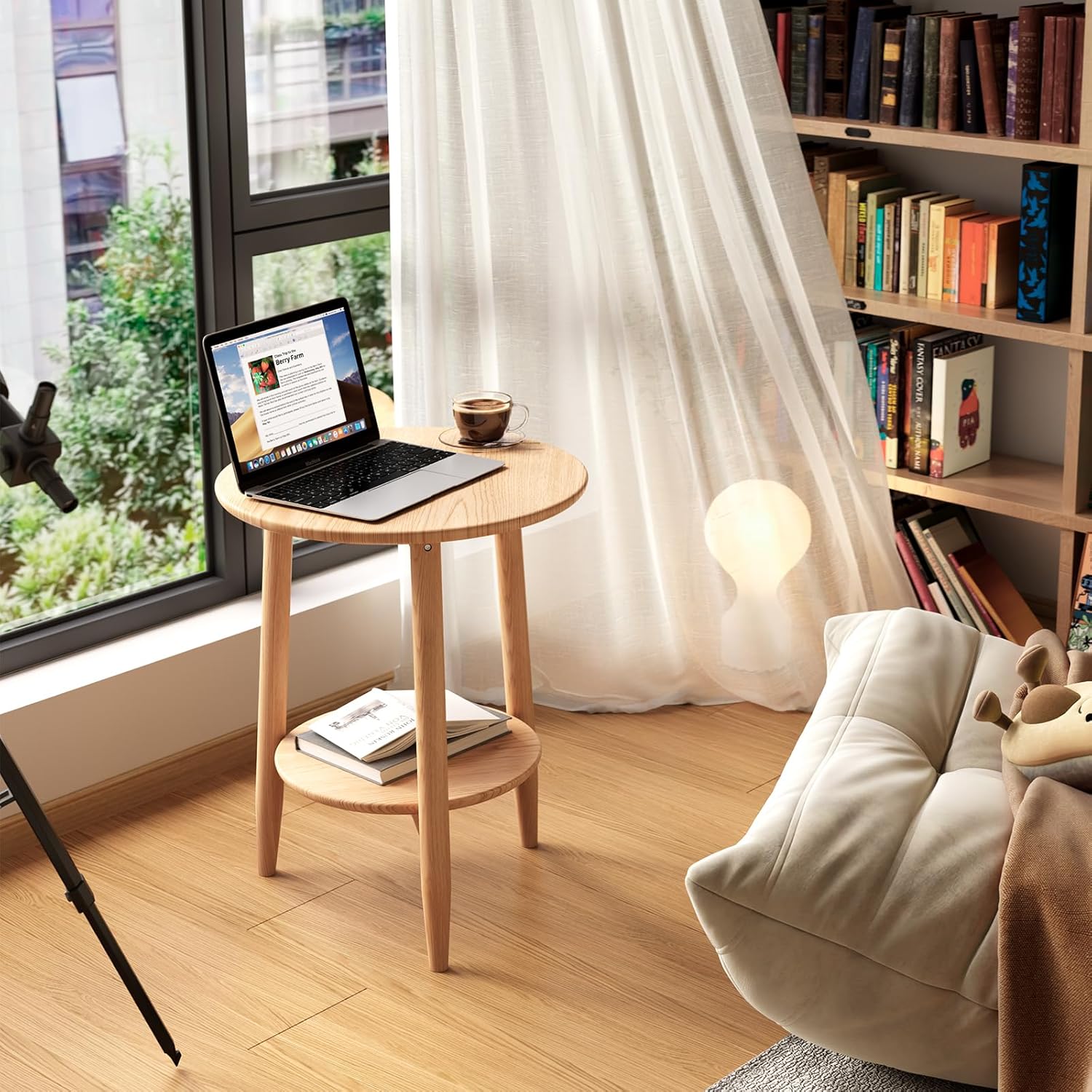 - 【Durable Beechwood Construction】Crafted from premium solid beechwood, this wood end table boasts durability and natural beauty. Its sturdy structure resists wear and tear, making it a timeless addition to your round end tables living room collection.