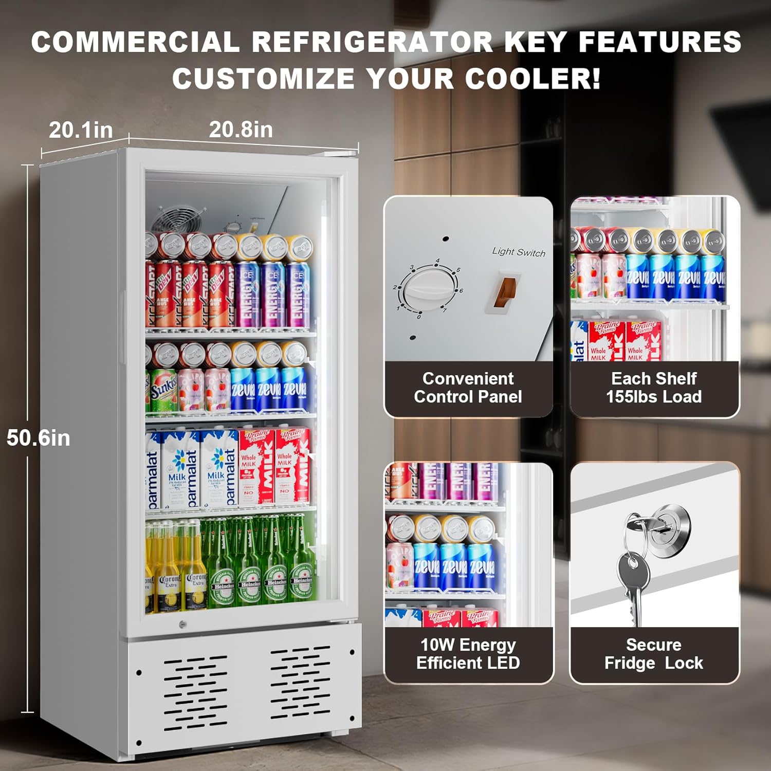 - Optimized Storage Capacity and Customizable Design-Maximize your beverage storage efficiency with this high-capacity commercial beverage cooler, engineered to hold up to 380 cans (250ml) or 230 bottles (330ml). Featuring 3 adjustable tempered glass shelves, this drink refrigerator allows flexible organization for cans, bottles, wine, or specialty beverages. Ideal for businesses, bars, or home use, its space-saving design ensures seamless integration into tight spaces while delivering superior storage density.
