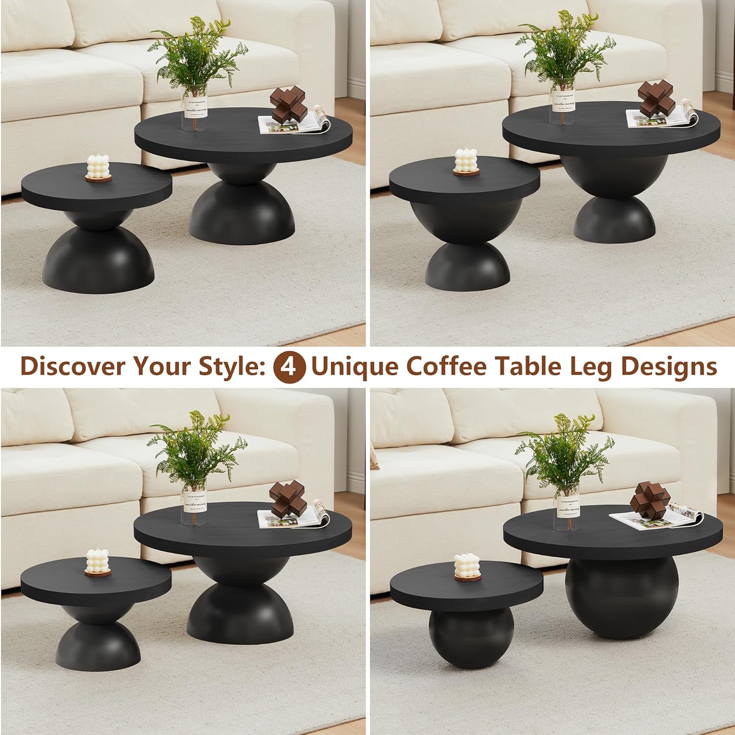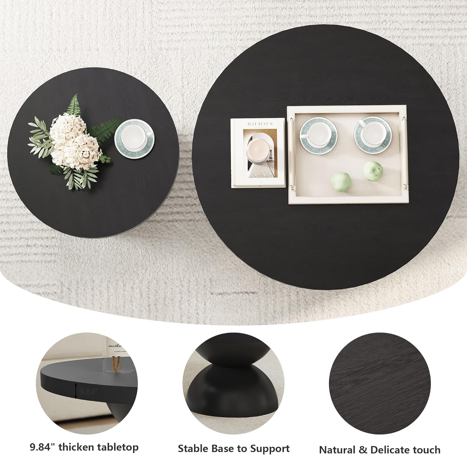 - 【Functional & Flexible】Use the larger table as a coffee table centerpiece and the smaller one as a side table or end table next to your sofa or bed. Their neutral finish blends effortlessly with Scandinavian, Japandi, and mid-century modern interiors.