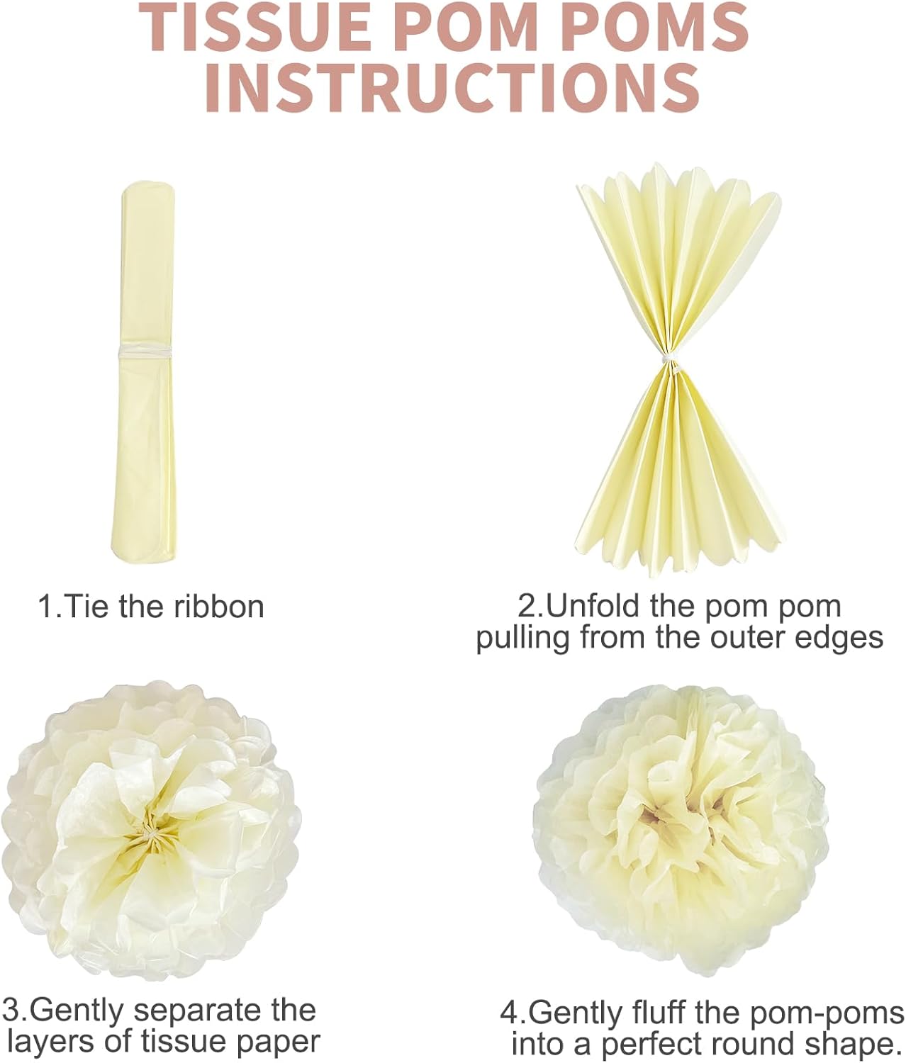 - VALUE PACKAGE - You will get 12 dreamy paper pompoms and tassel streamers, which only need simple arrangement to create an elegant and beautiful background wall.