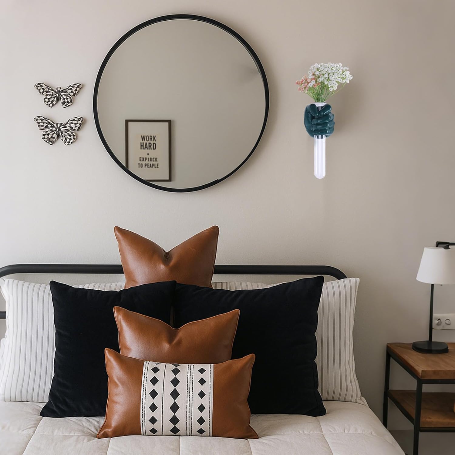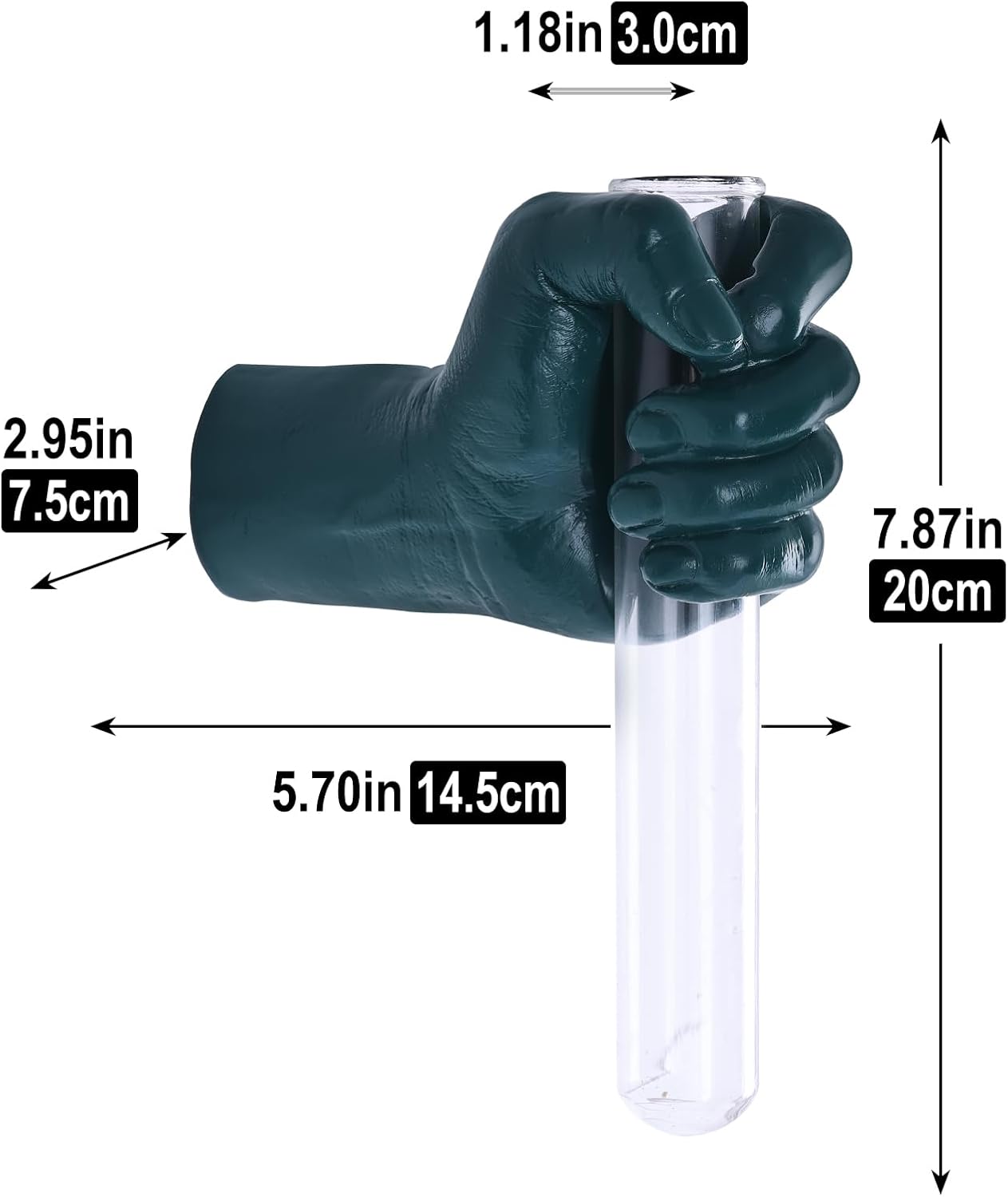 Green Wall Sculptures, Hand Vases Home Decor, Wall Mount Art Sculpture, Unique Wall Art Statue, Funky Flower Vase Decorations, Modern Eclectic Hanging Decor,Glass Test Tube Vase