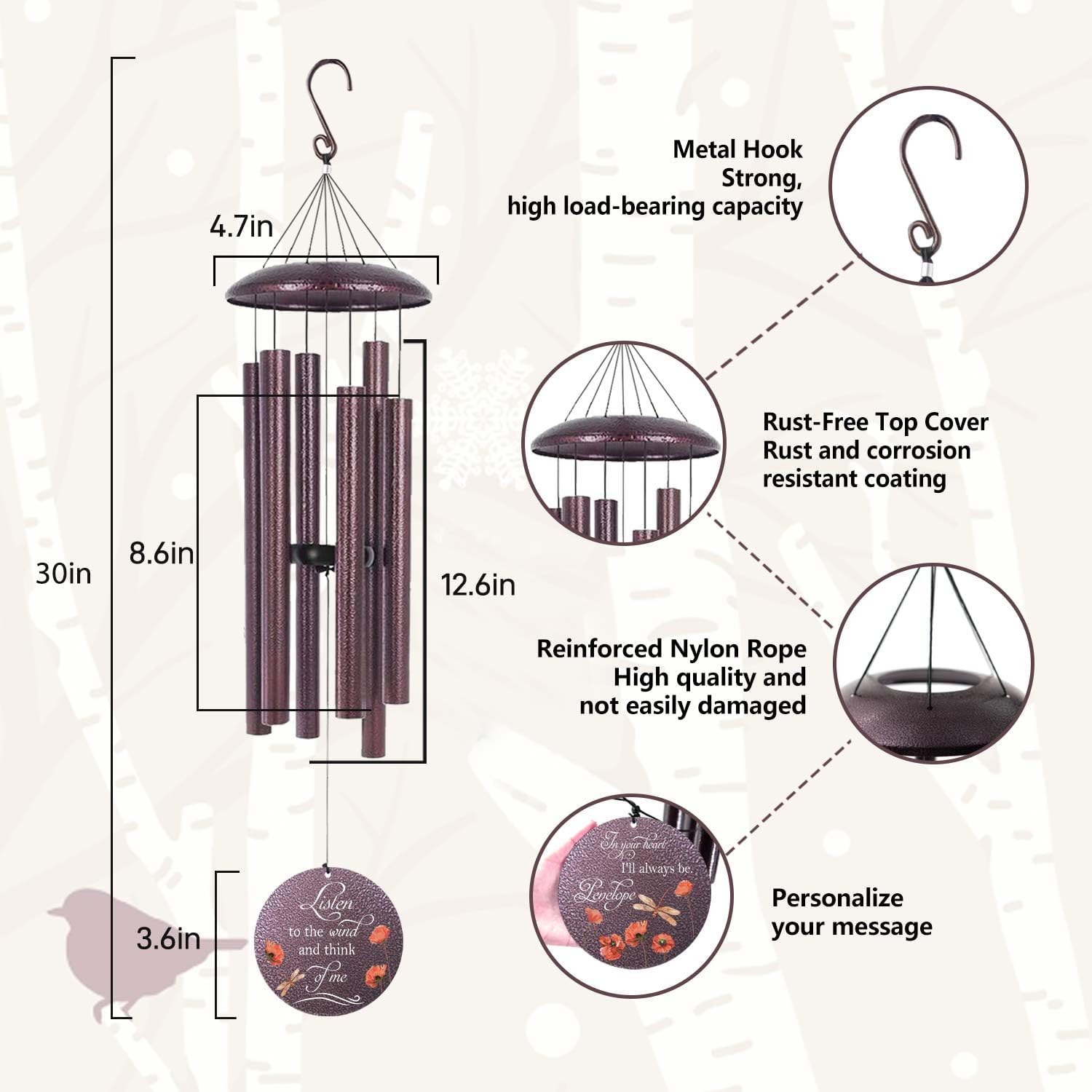 - THOUGHTFUL GIFT: The sympathy wind chime comes with exquisite gift box securely packaged, also you can choose a gift card, customized plus gift card which is excellent condolence gift for the loss of a dad, mom, son, daughter, brother, sister, bring comfort to them.